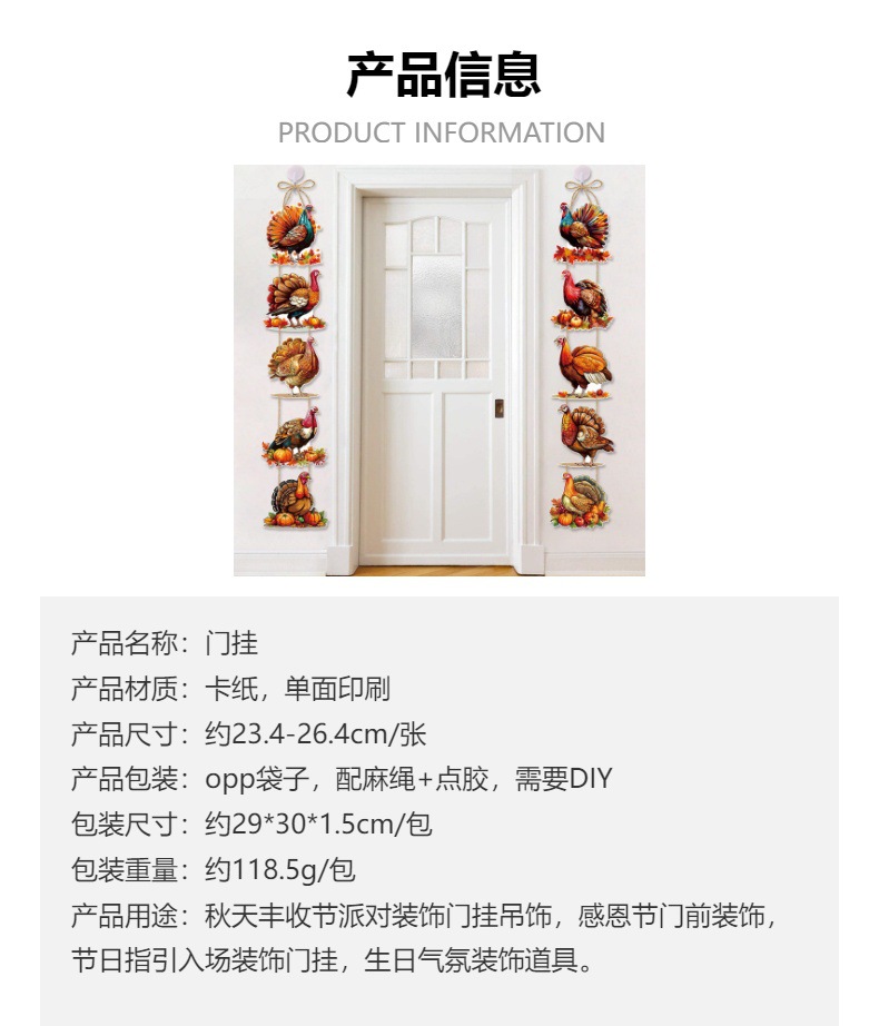 Nuevo estilo europeo y americano fiesta de Acción de Gracias decoración de puerta colgante pancarta otoño cumpleaños decoración de fondo de puerta de pavo colgante pancarta
