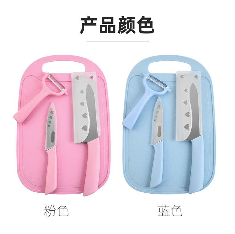 Fábrica al por mayor de acero inoxidable azul suplemento alimenticio doméstico de cuatro piezas Cuchillo Spot Venta caliente Juego de cuchillos de tabla de cortar neta