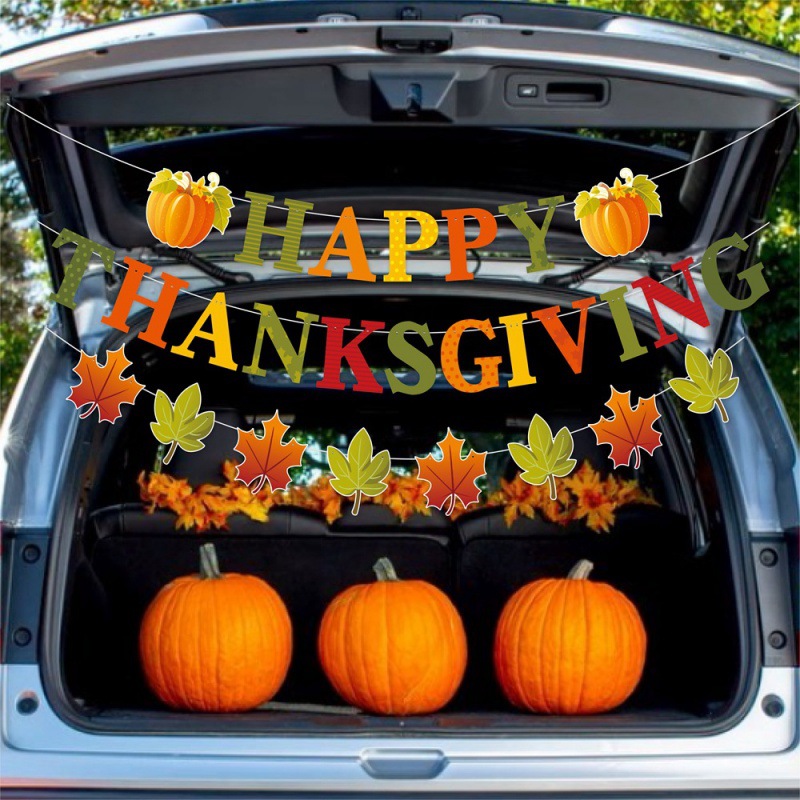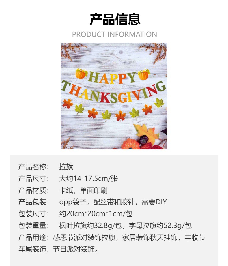 Decoración de fiesta de Acción de Gracias europea y americana tira de banderas de otoño hojas de arce feliz acción de Gracias tira de banderas tira de flores