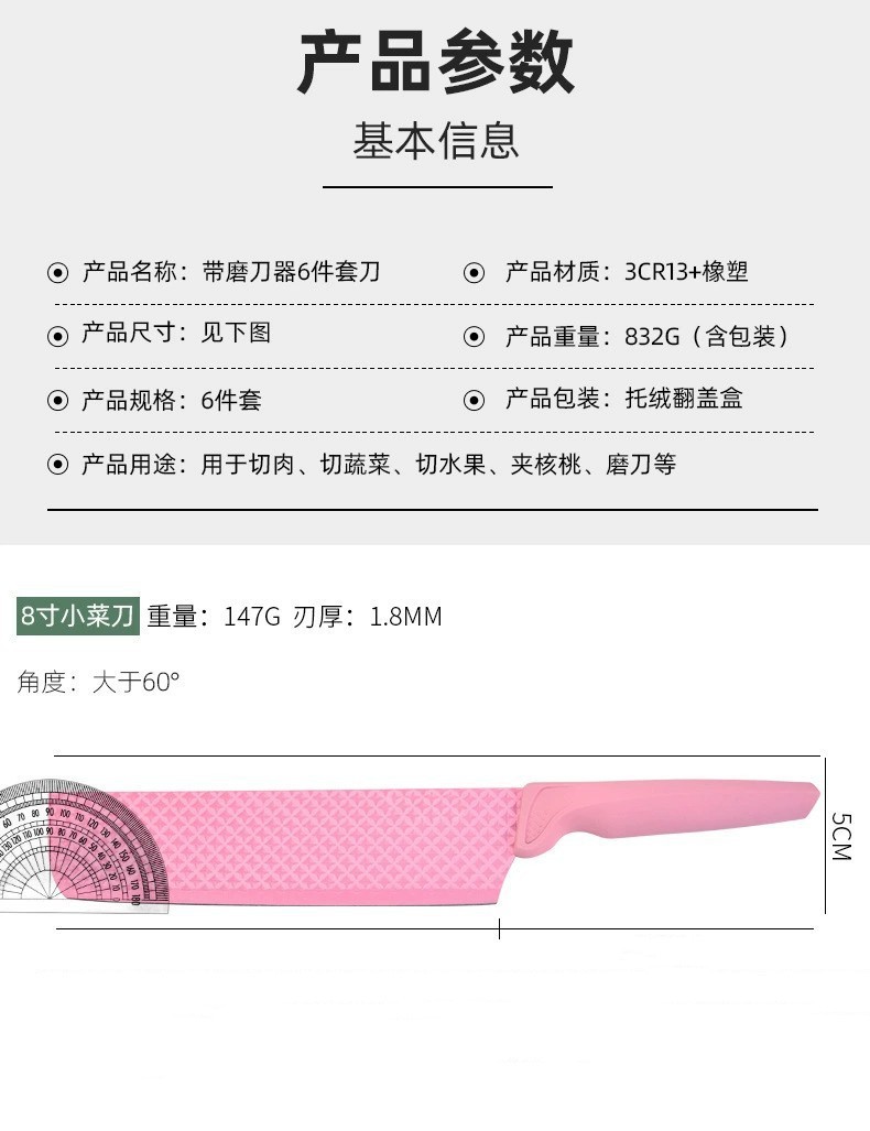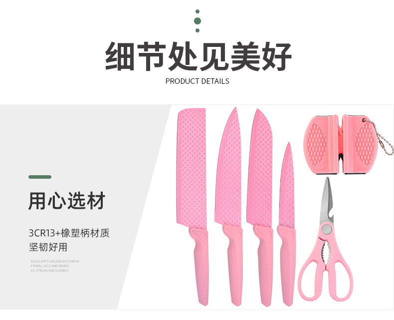 Venta caliente patrón de diamante juego de cuchillos hexagonales juego de cuchillos de cocina rosa afilado tijeras de cocina cuchillo de cocina juego afilado