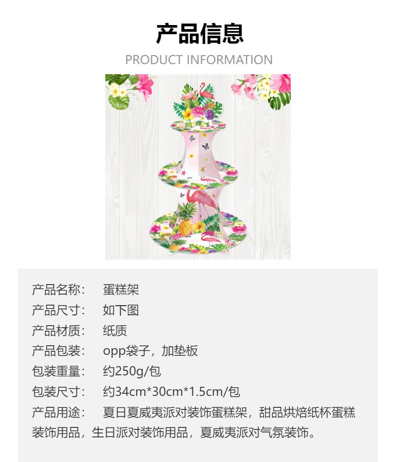 Nuevo estilo transfronterizo decoración de fiesta hawaiana soporte para pasteles de múltiples capas soporte para pasteles decoración de cumpleaños de verano soporte para pasteles