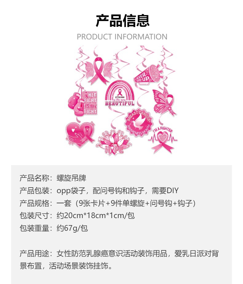 Nuevo transfronterizo amor leche día decoración de la fiesta espiral placa colgante cáncer de mama amor leche día decoración