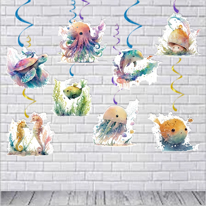Nuevo tema submarino decoración de fiesta de cumpleaños decoración de espiral decoración de fiesta de verano medusa colgante de espiral colgante