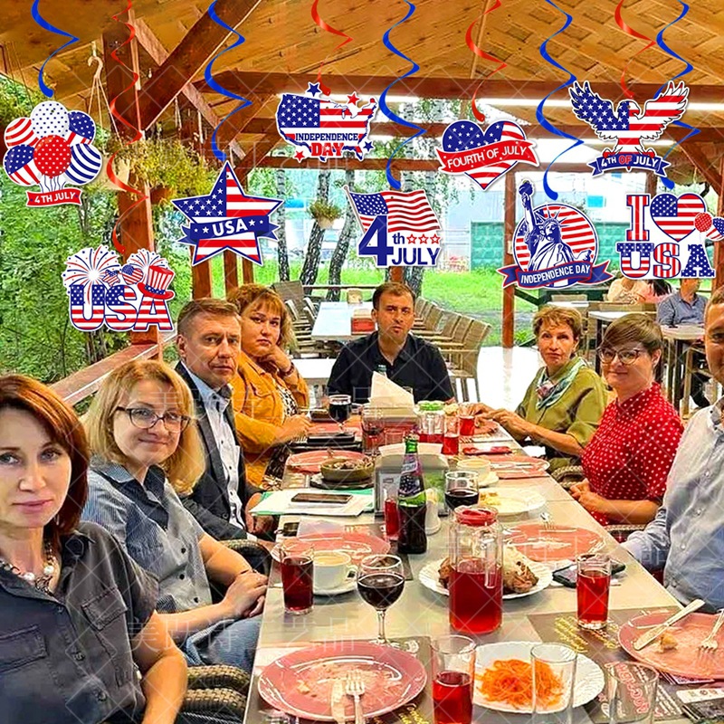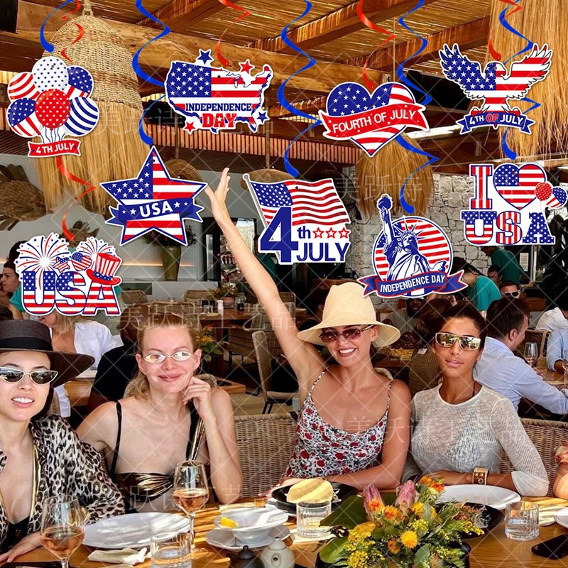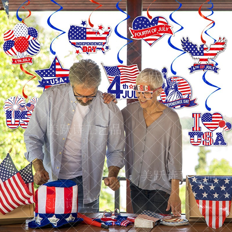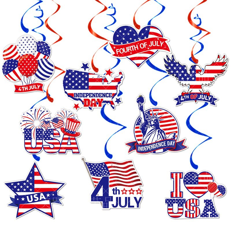 Día de la Independencia transfronterizo espiral bandera de Estados Unidos colgante espiral decoración de la atmósfera del día de la independencia