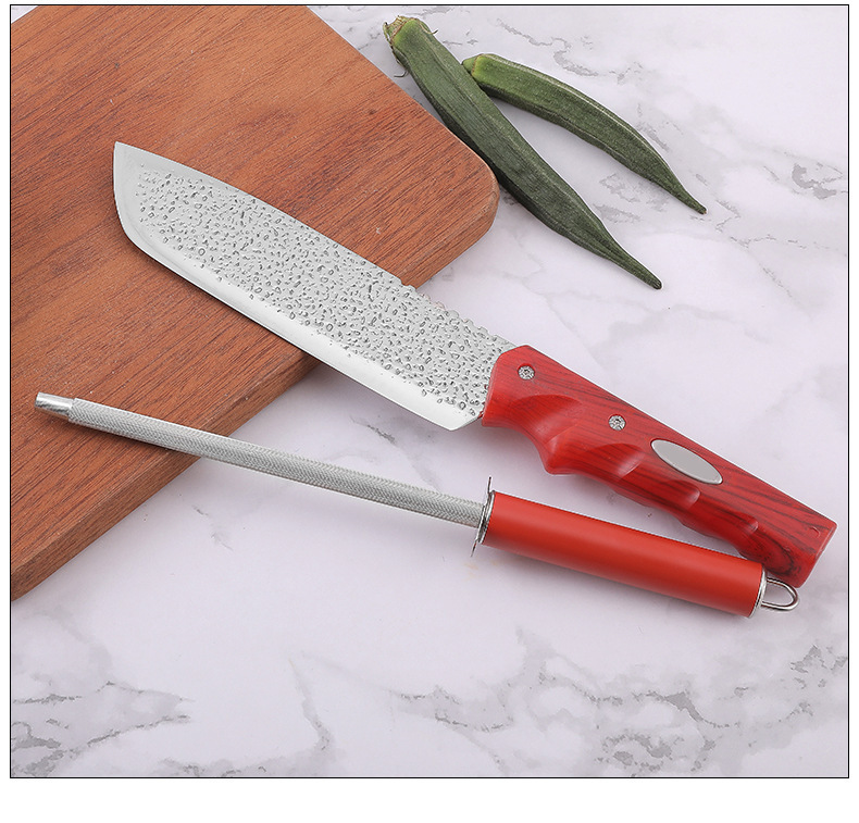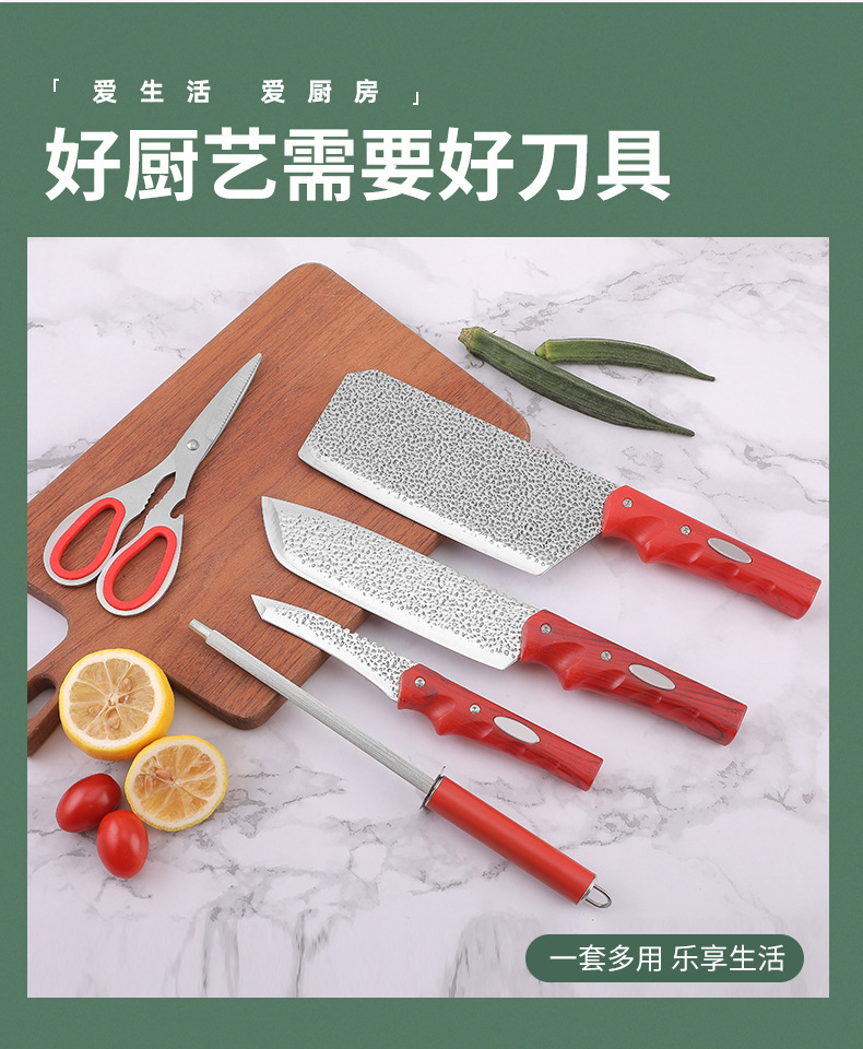 Comercio exterior venta al por mayor caliente malla roja mango cuchillo titular combinación regalo color en caja martillo de acero inoxidable patrón de seis piezas cuchillo conjunto