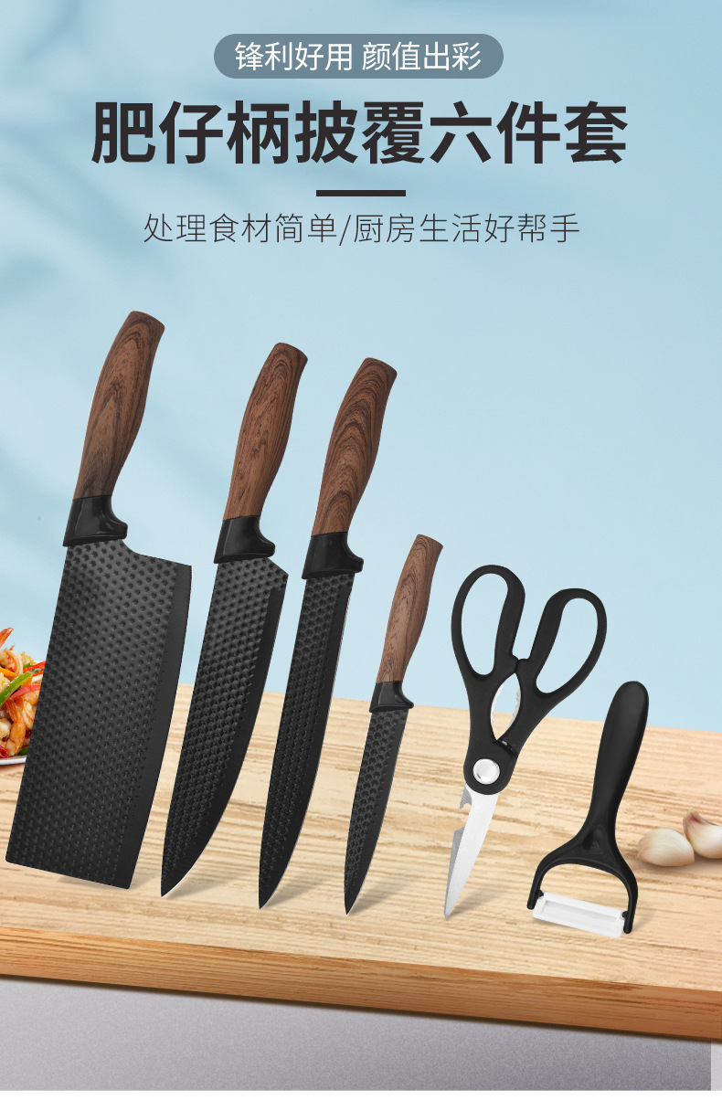 Venta caliente transfronteriza seis estrellas patrón de alta calidad cuchillo tijeras utensilios de cocina de acero inoxidable cocina hogar cuchillo traje cuchillo de cocina traje