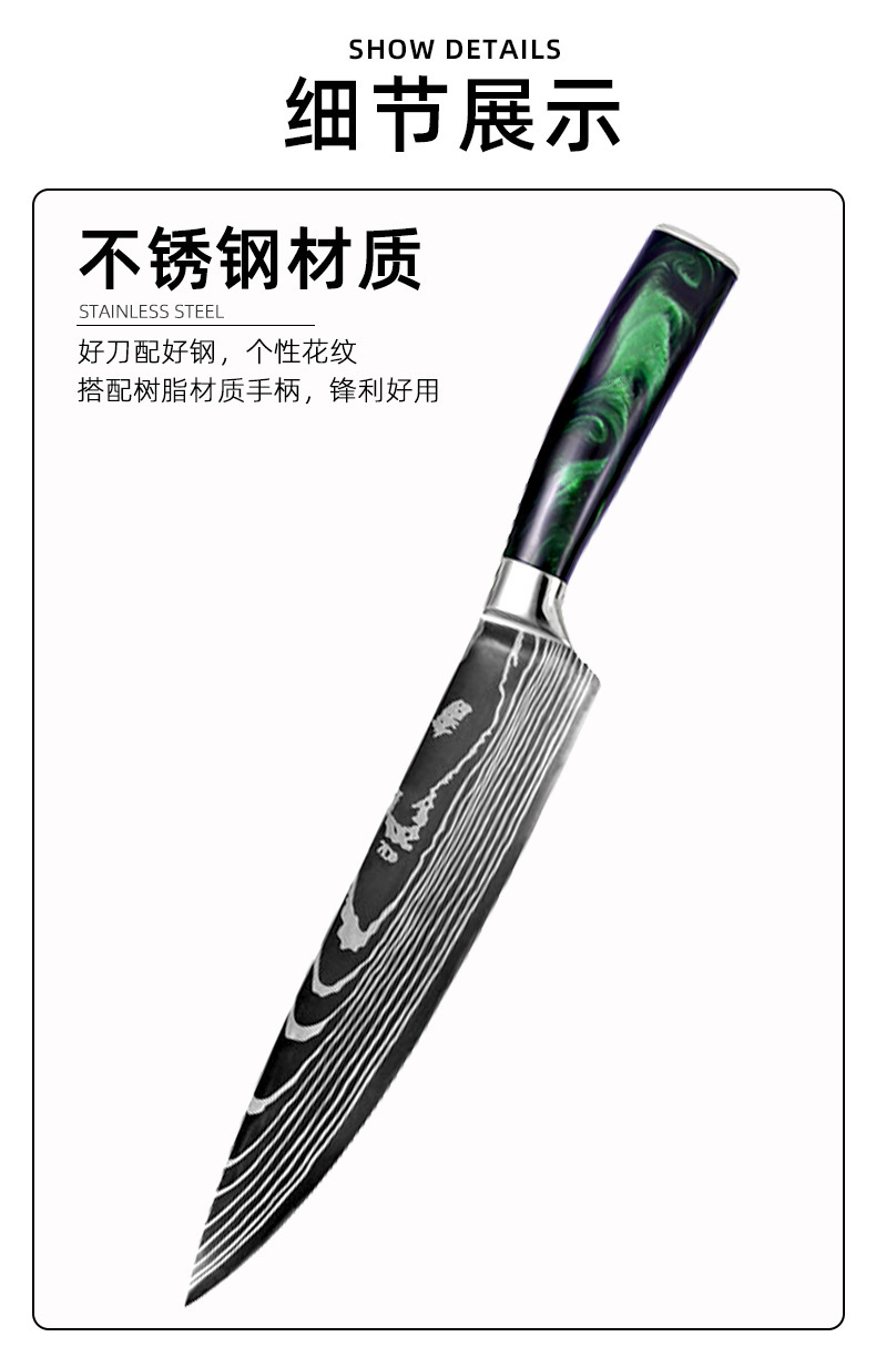 Yangjiang fábrica mango de resina patrón de láser de Damasco en la acción al por mayor nuevo traje de cuchillo chef cuchillo conjunto cuchillo