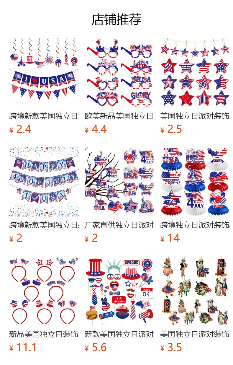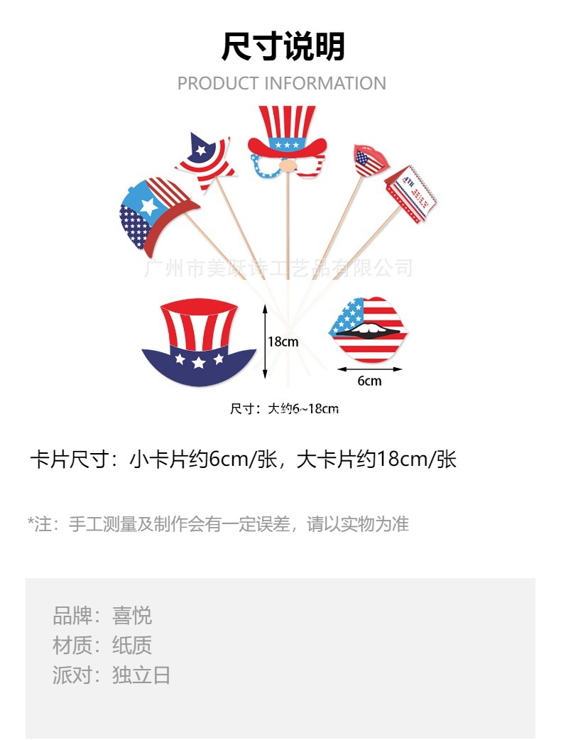 Nuevos productos Accesorios fotográficos de decoración del Día de la Independencia de EE. UU. 4 de julio Decoración de la fiesta del Día de la Independencia Artículos fotográficos divertidos