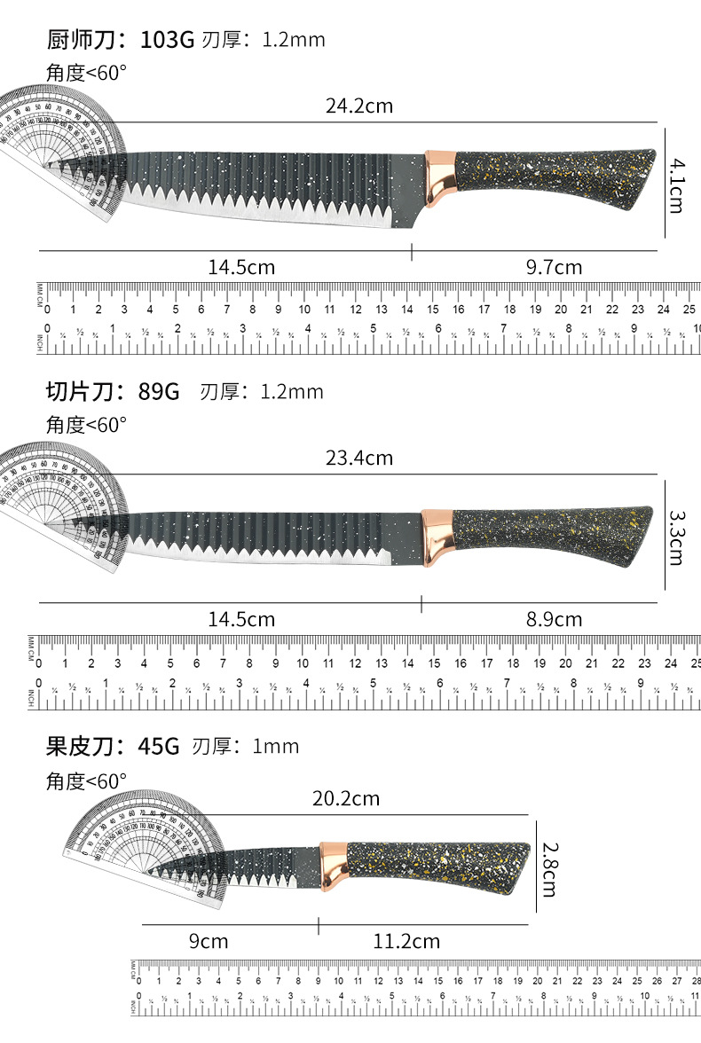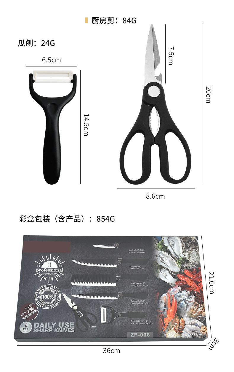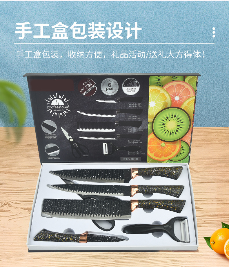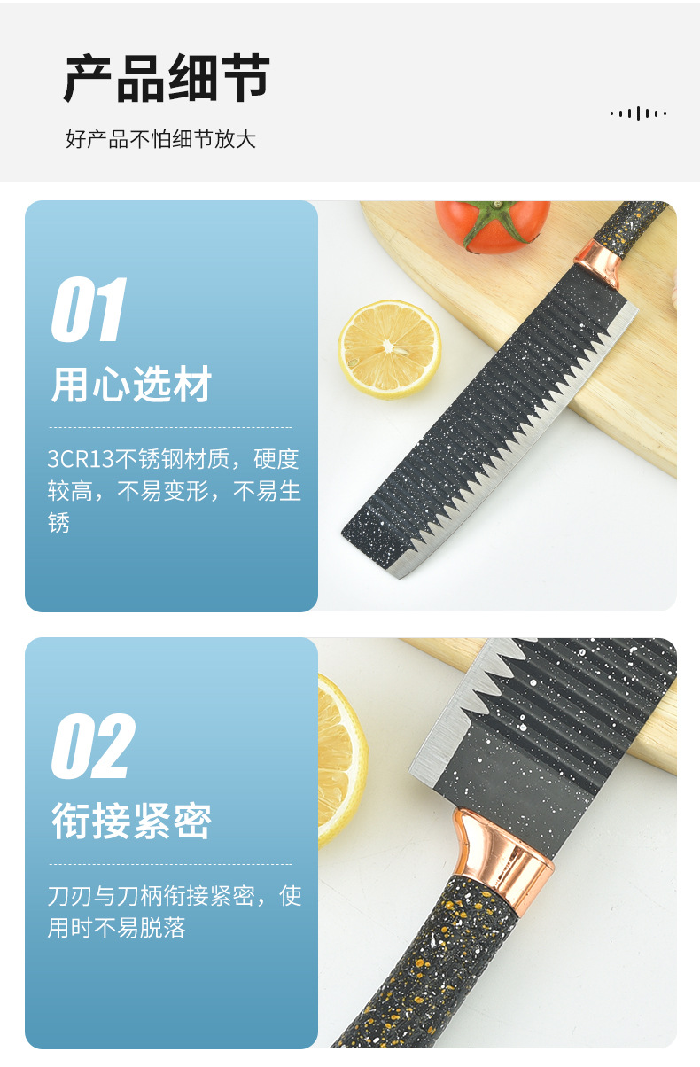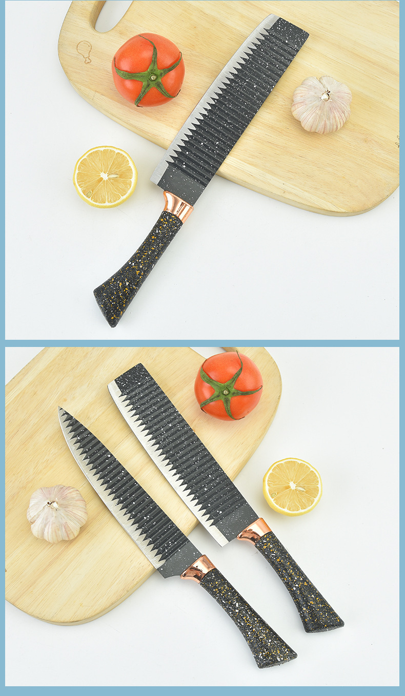 Transfronteriza de alta calidad caliente oro rosa agua ondulación cuchillo de cocina de seis piezas conjunto hogar cuchillo de cocina traje de comercio exterior cuchillo y tijeras