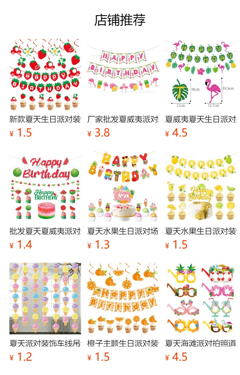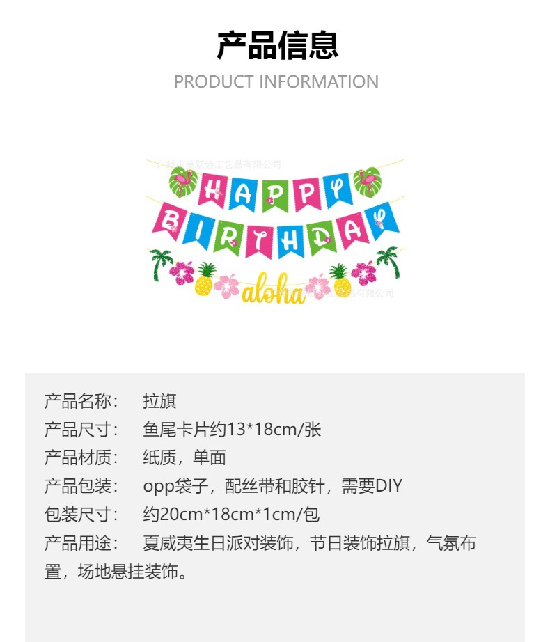 Decoración de fiesta de cumpleaños hawaiana transfronteriza bandera de dibujo decoración de cumpleaños de verano props banderas flamencos