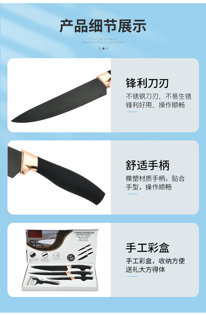 Comercio exterior en stock fábrica chapado en oro rosa cabeza grasa muñeca manejar conjunto de cuatro piezas hogar cocina cuchillo de corte vegetal caja de color