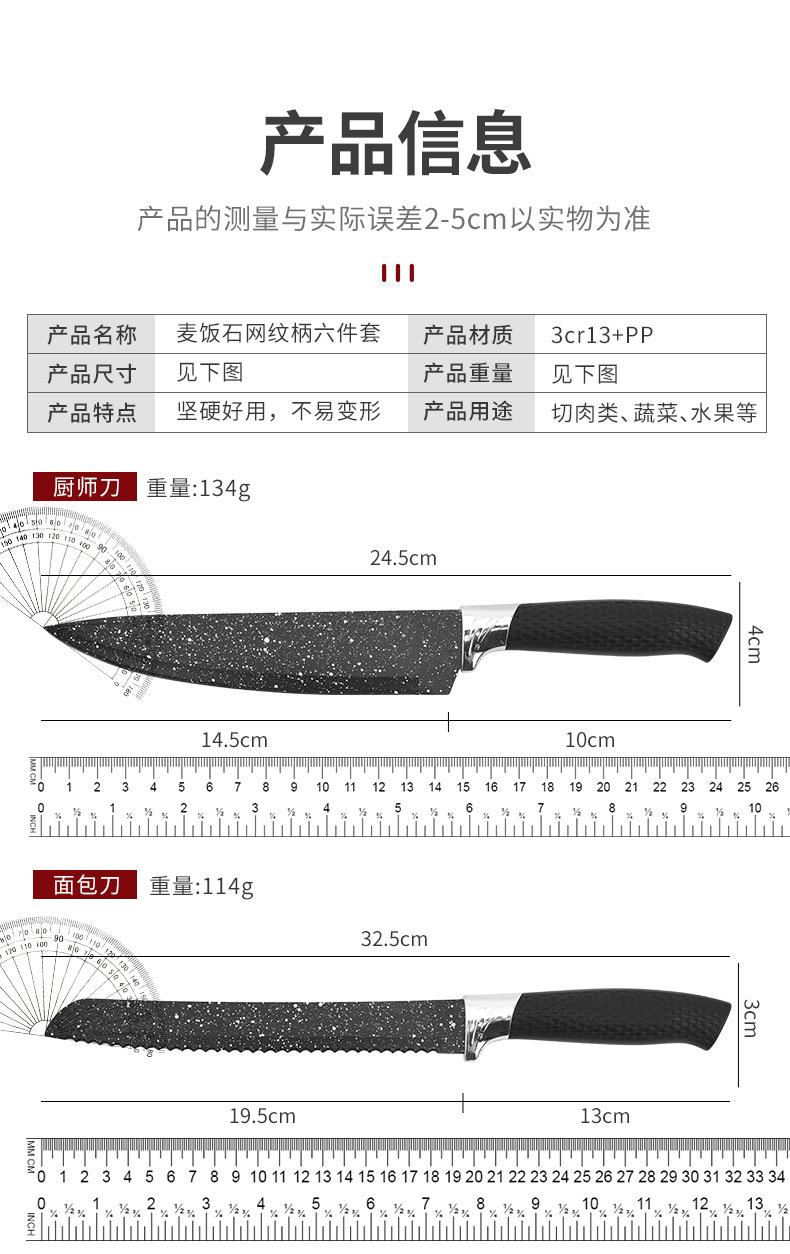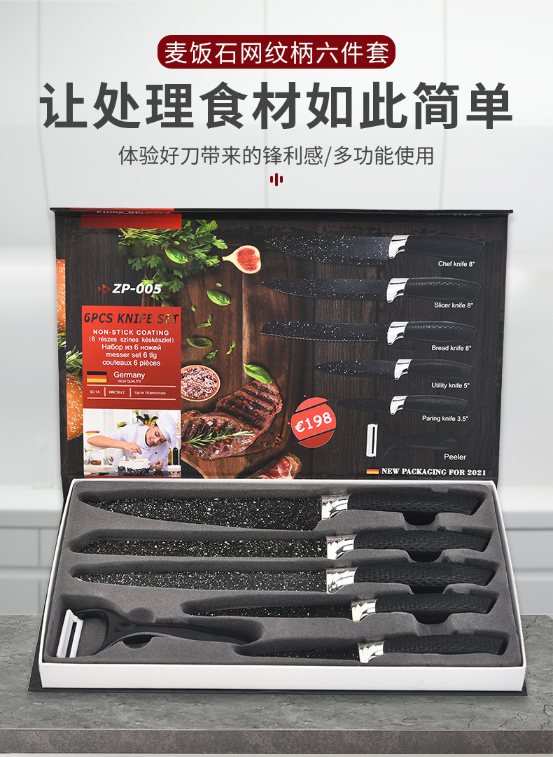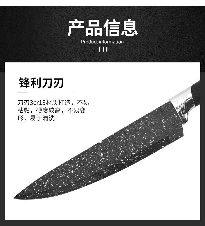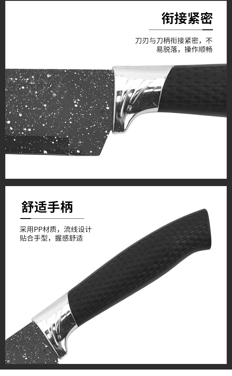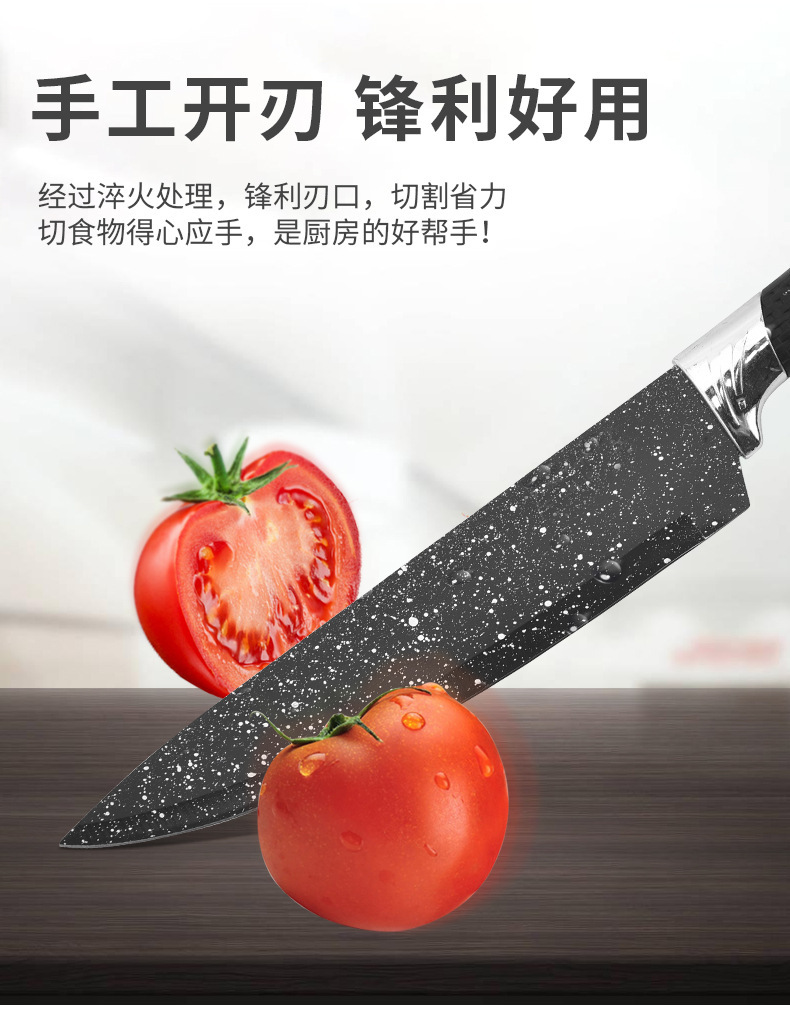 Fábrica al por mayor maifan cuchillo de cocina de piedra conjunto de seis piezas cielo estrellado pintura en aerosol malla mango conjunto cuchillo