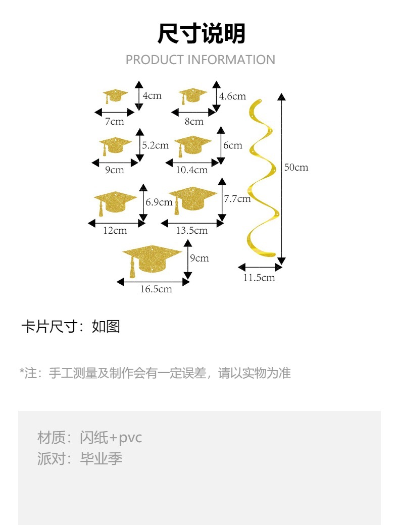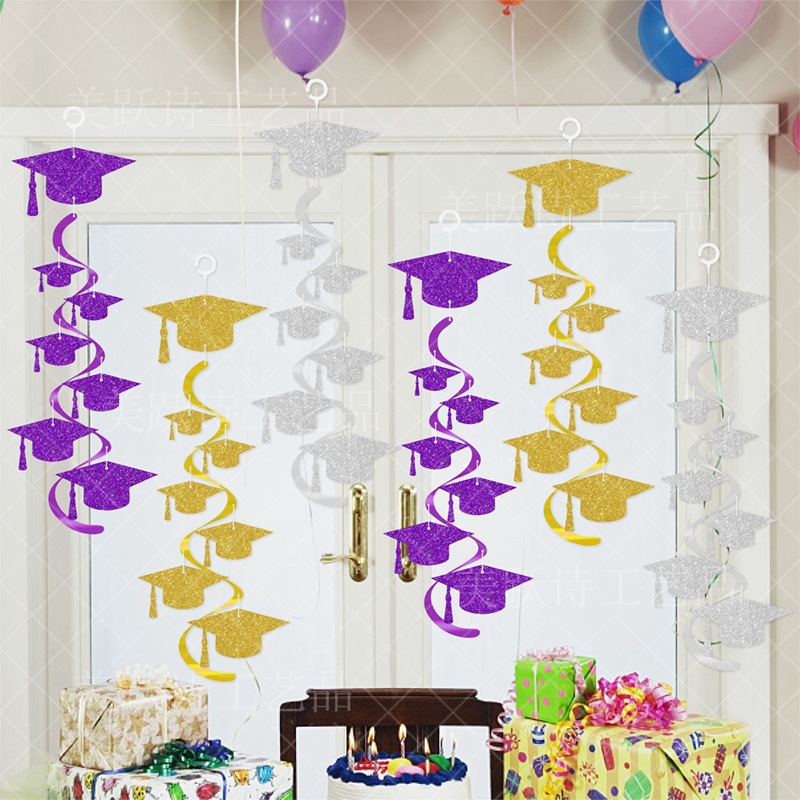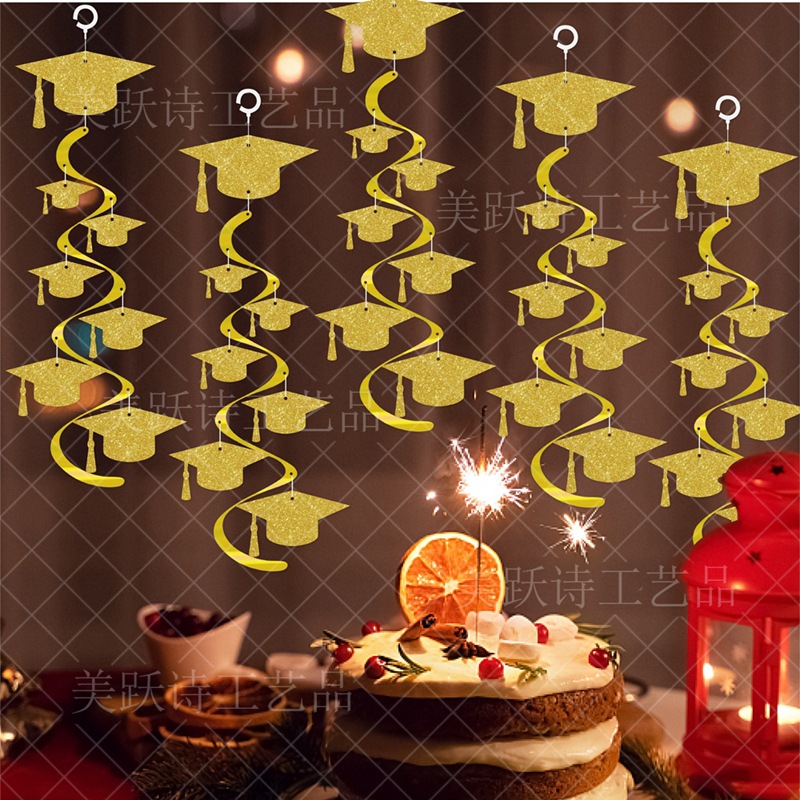 Nueva decoración de la fiesta de graduación campana de viento espiral colgantes de grados sombrero espiral colgante accesorios de decoración de graduación