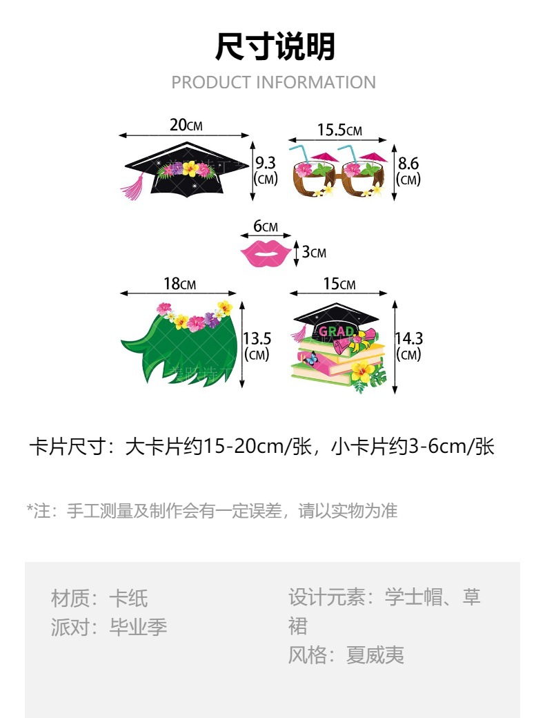 Transfronterizo Hawaii graduación fiesta decoración foto accesorios graduación temporada foto decoración suministros graduado ojo marco