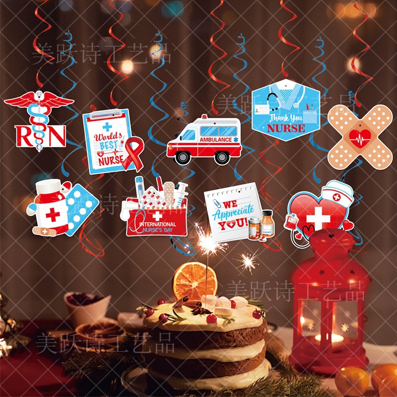 Europea y Americana enfermera decoración del partido del festival etiqueta en espiral diseño del techo enfermera espiral colgando decoración del Festival de la enfermera