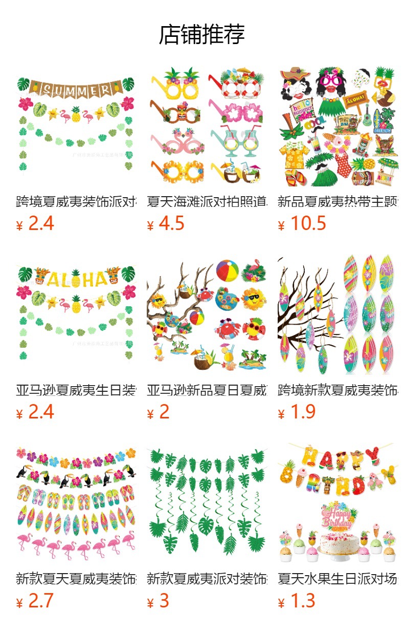 Venta al por mayor verano Hawaiano fiesta decoración tire bandera tire flor pastel tarjeta inserción Hawaiano escena diseño decoraciones