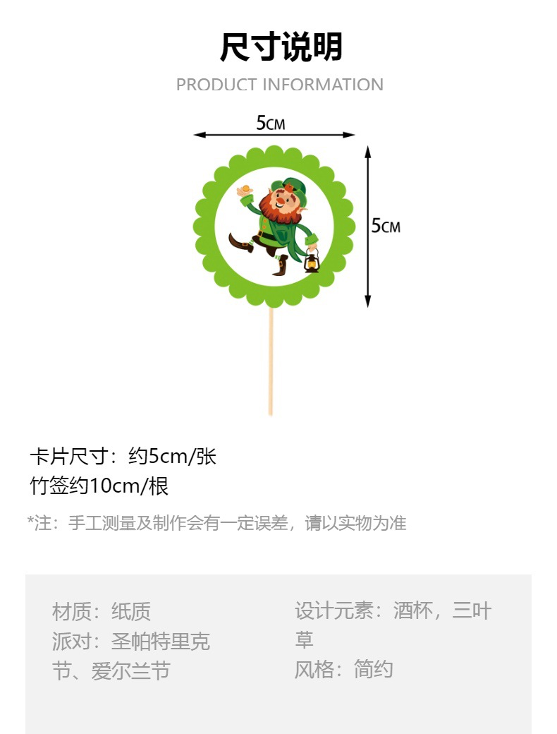 2024 nuevo día de San Patricio fiesta decoración pastel plug-in irlandés cerveza Festival decoración de la torta