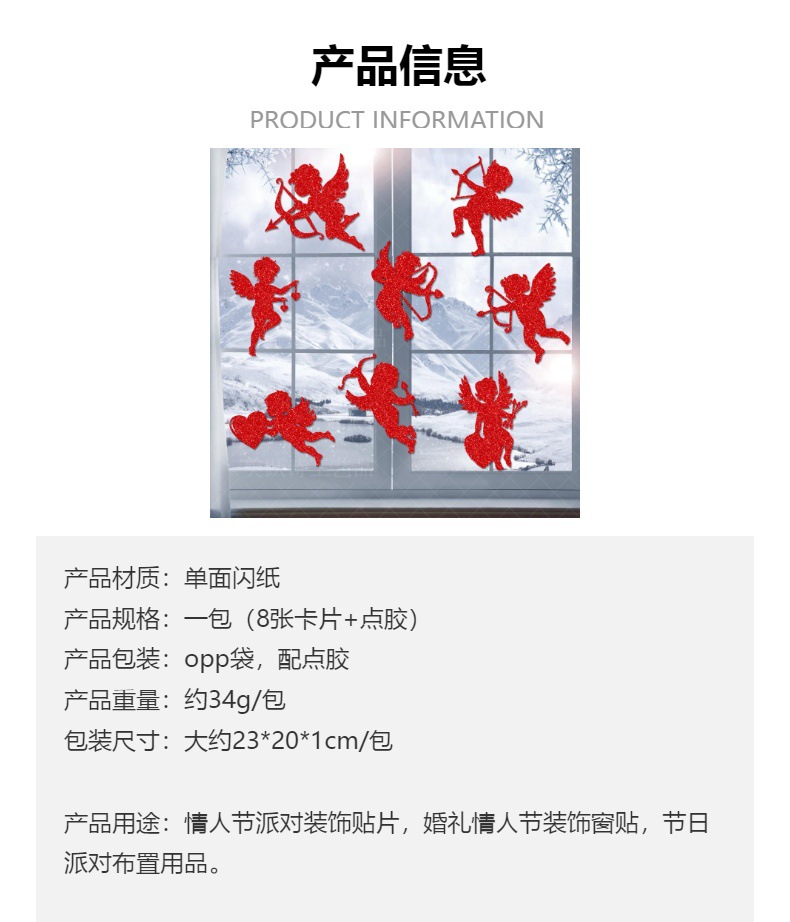 2024 Día de San Valentín fiesta decoración ventana pegatinas romántica propuesta lugar diseño Cupido parche pegatinas de pared