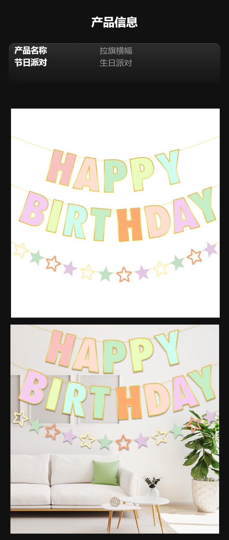 Nueva fiesta de cumpleaños decoración cumpleaños tire bandera macaron tema Feliz cumpleaños tire bandera cumpleaños decoración suministros