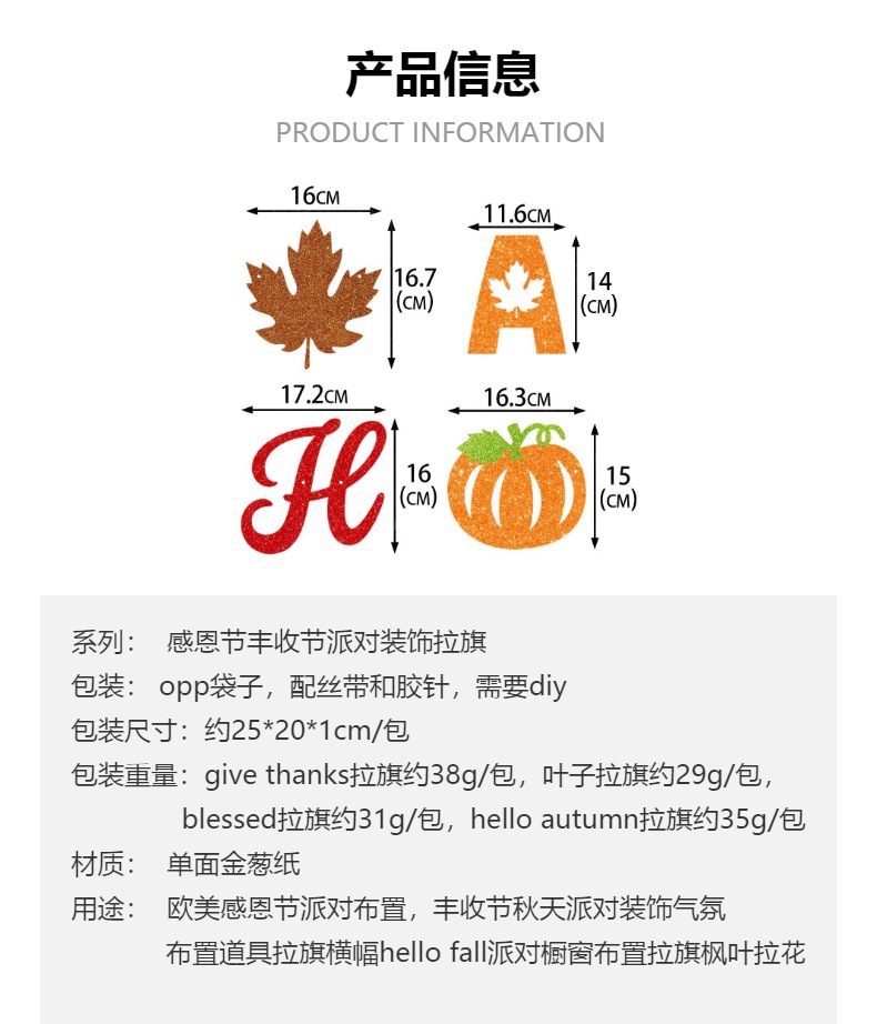 Amazon decoración de Acción de Gracias tire de la bandera otoño fiesta atmósfera diseño Hoja de arce calabaza tire de la bandera