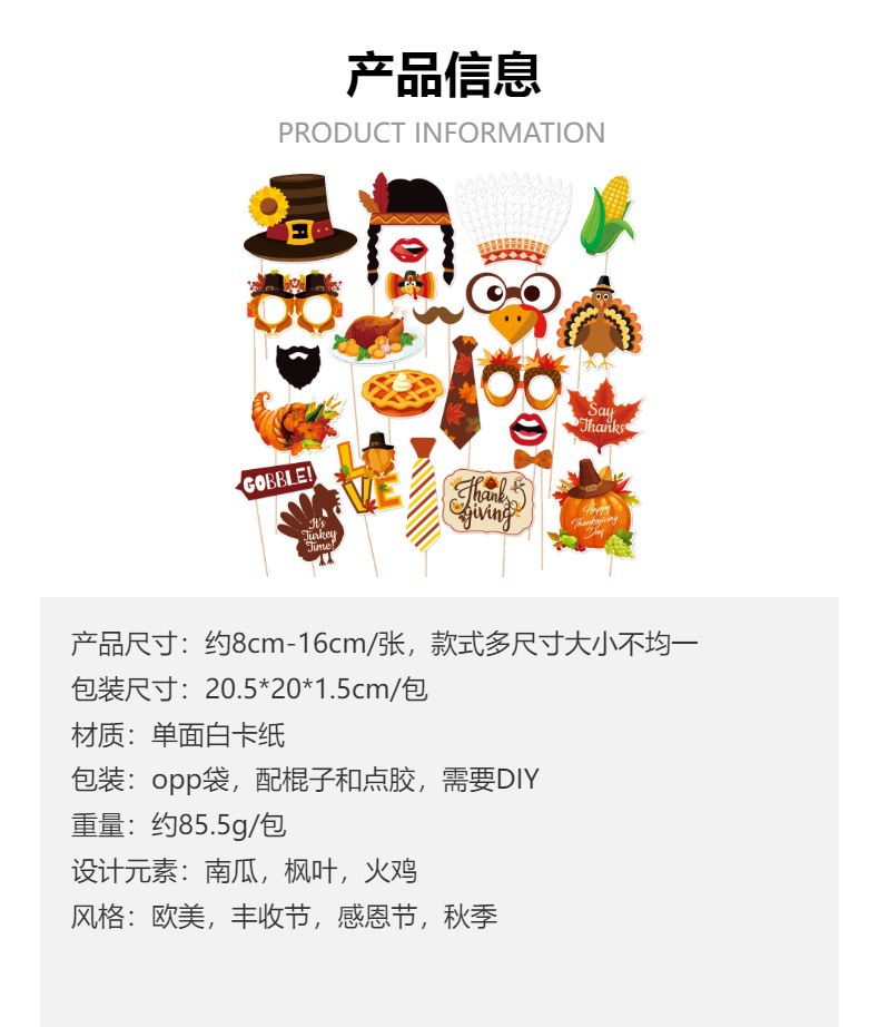 Decoración de fiesta de Acción de Gracias transfronteriza Apoyos de foto de la hoja de arce Decoración de fiesta de vacaciones de otoño Suministros de fotos divertidas