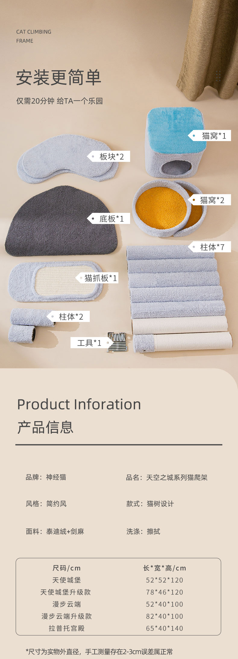 | Colores | Trompeta del tren Dudu,Trompeta de oso de aviación,Oso del bosque trompeta,Oso del bosque mediano,Trompeta dragón volador,Dragón volador,Tablero de captura de gato cangrejo,Marco de escalada para gatos pequeños de doble hongo rosa claro,Setas de colores,Setas lisas,Marco de escalada para gatos Soda Green Fun,Marco de escalada para gatos amarillo de doble capa,Marco giratorio para gatear peces y gatos,Marco de escalada de gato de plumas grises YM-2 grande,Marco de escalada de gato de plumas grises YM-1 de tamaño mediano,Estera de plumas de camello de arroz, marco de escalada para gatos, YM-3 de tamaño mediano,Paseando por las nubes (100cm),Actualización de caminata en la nube (100cm),Castillo de los Ángeles (120cm),Mejora del castillo del ángel (120cm) |