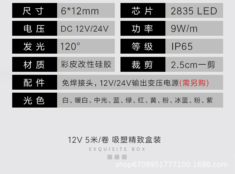 12Vpvc6*12mm2.5cm corte (50 m/rollo)