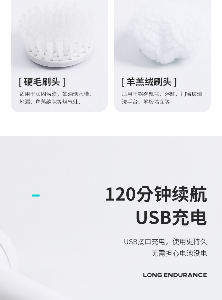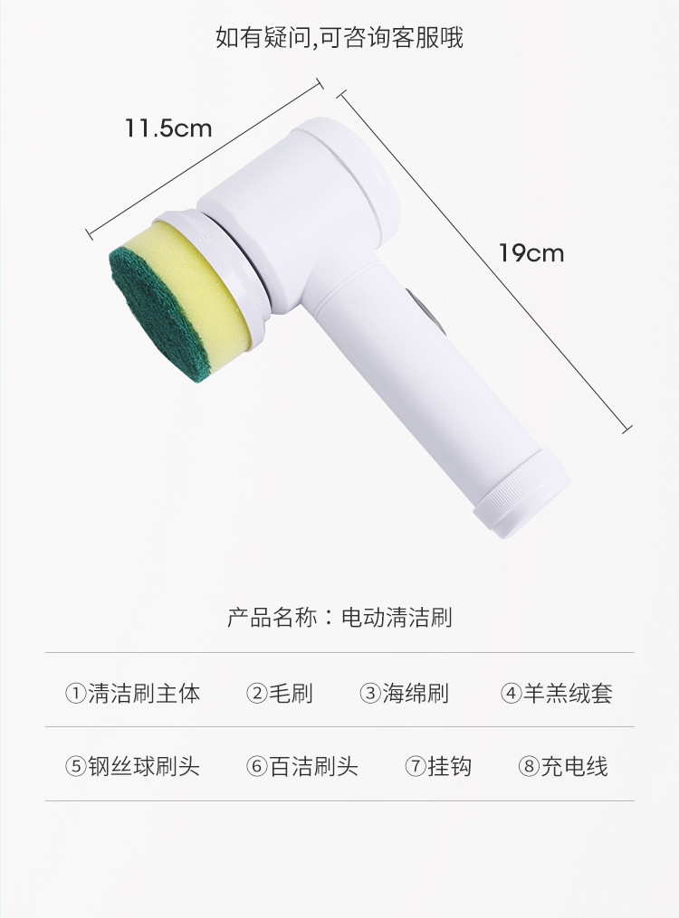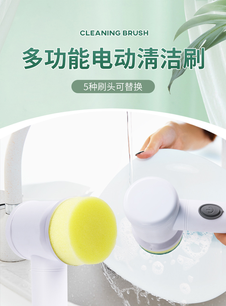 Nuevo cepillo de cocina de mano al por mayor, cepillo de lavado para el hogar, olla, artefacto, cepillo de limpieza eléctrico de limpieza multifuncional, 5 cabezas