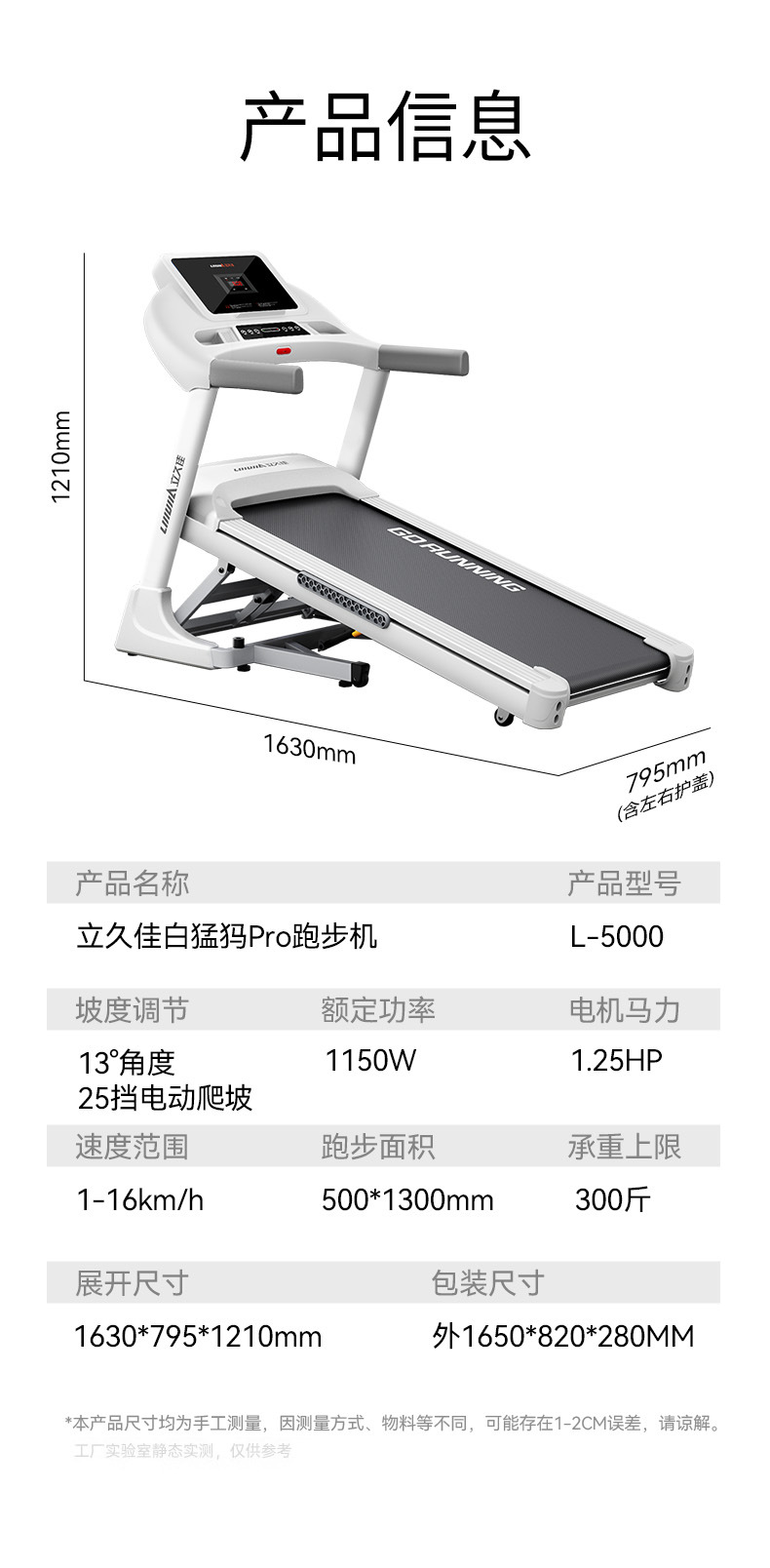 Área de la cinta de correr (largo * ancho)500*1300mm