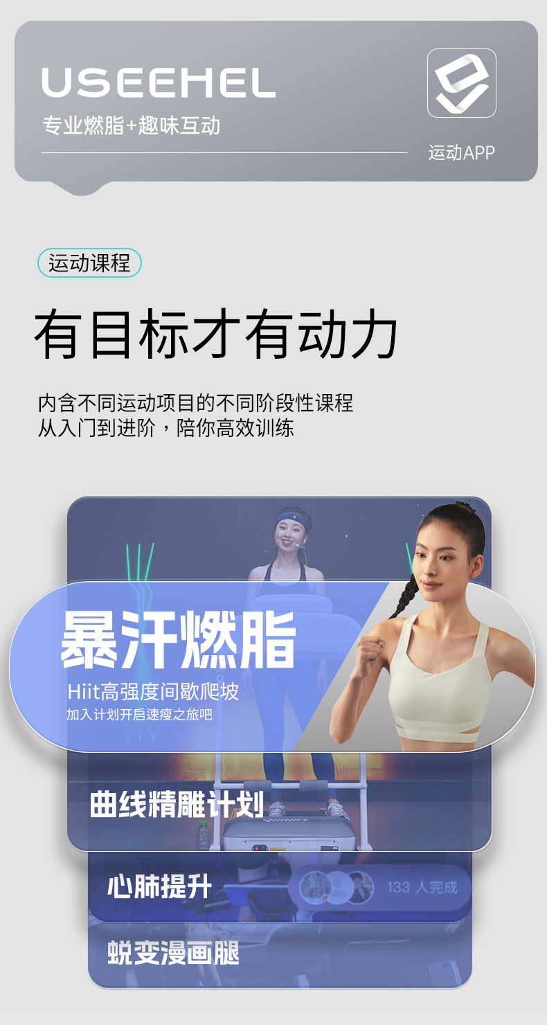 Programa de movimientoManual,Pérdida de peso,Quema de grasa,Escalada,Subidas y bajadas,Intermitentes,Correr en pendiente