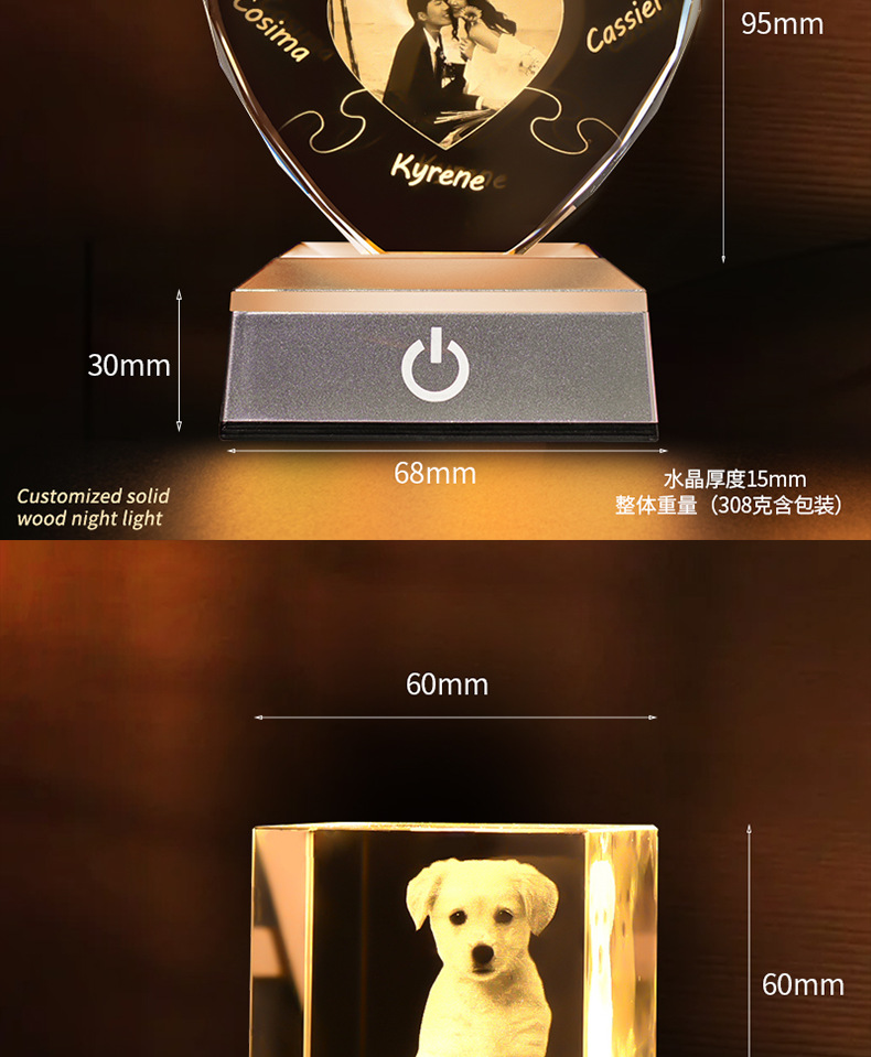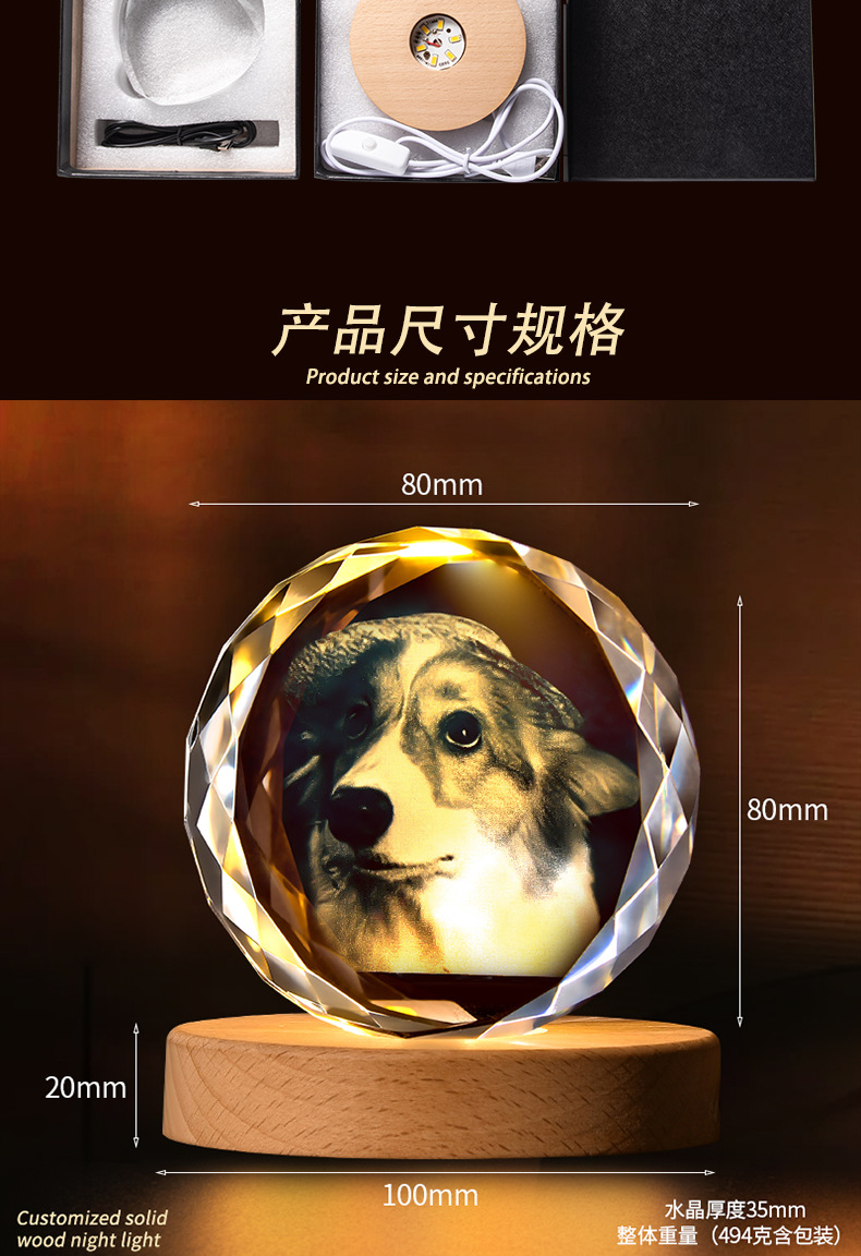 Nuevos productos transfronterizos, regalos de fotos de cristal creativos, personajes de mascotas personalizados, recuerdos, lámparas de cristal, decoración de escritorio
