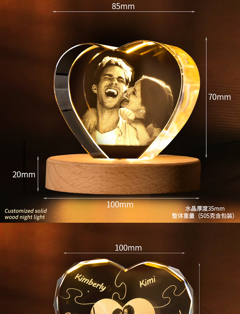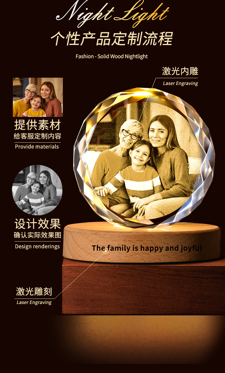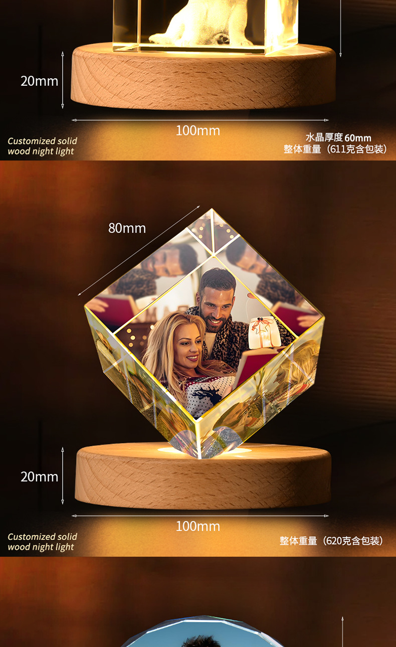 DiseñoBase de lámpara LED de madera maciza, cristal de alta calidad, personalizado con dibujos, claro y translúcido