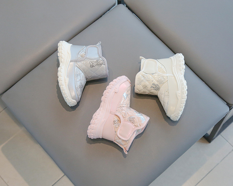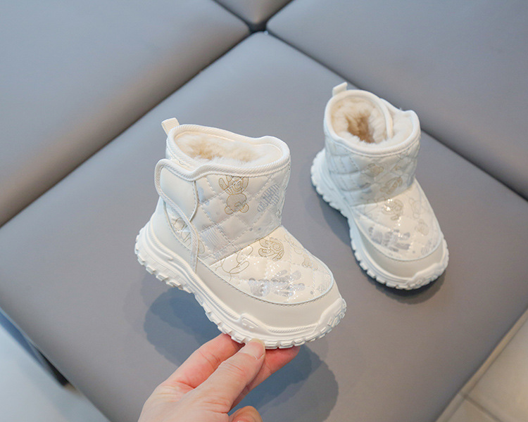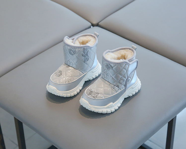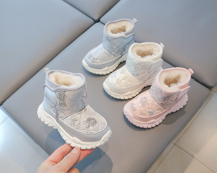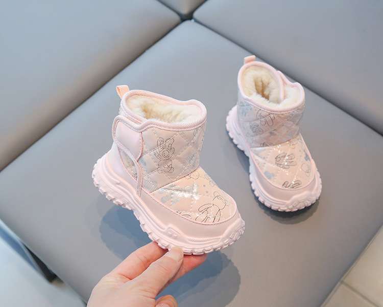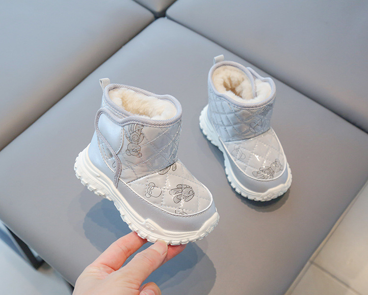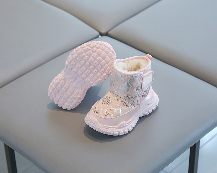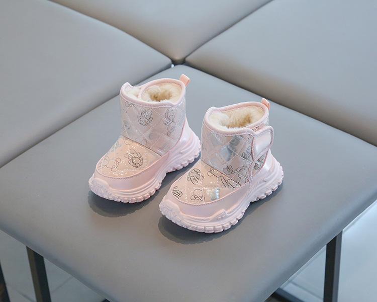 Botas de nieve para niños engrosadas con forro polar de Velcro alto de color sólido zapatos casuales acolchados de algodón cálidos botas acolchadas de algodón para hombres y mujeres