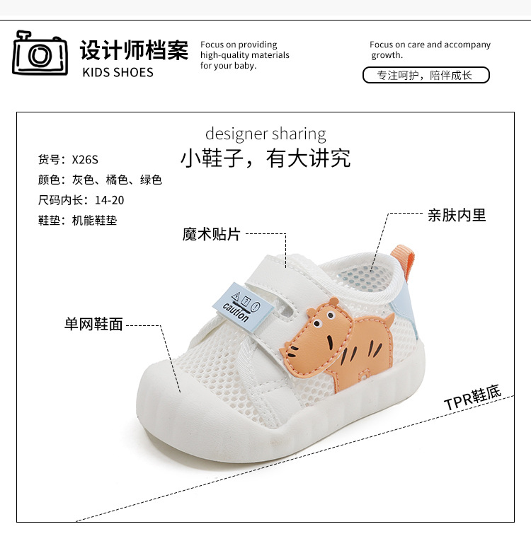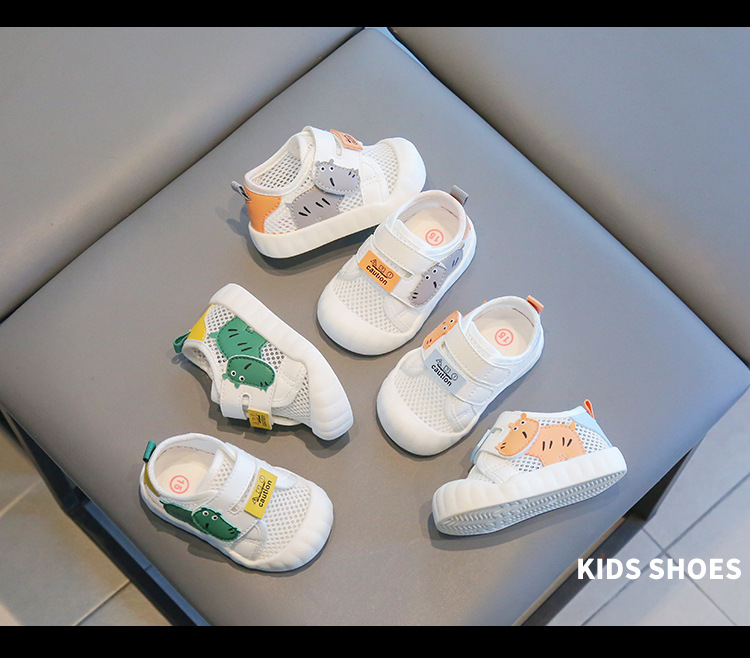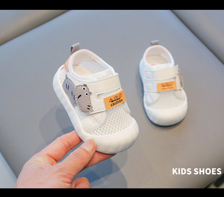 Verano nuevo estilo transpirable dibujos animados baby network shoes mujer suela suave para bebés y niños pequeños zapatos blancos antideslizantes y resistentes al desgaste para hombres