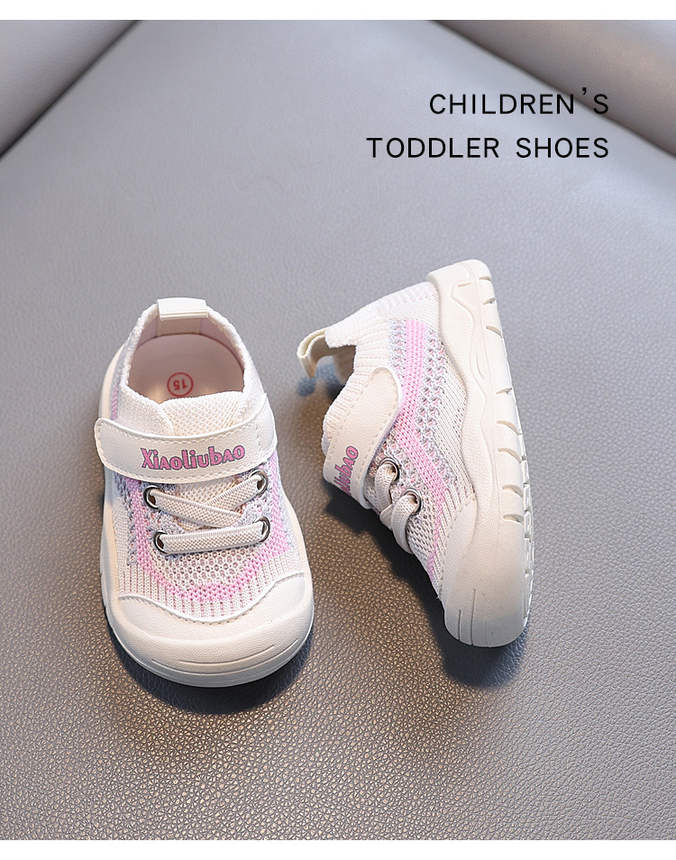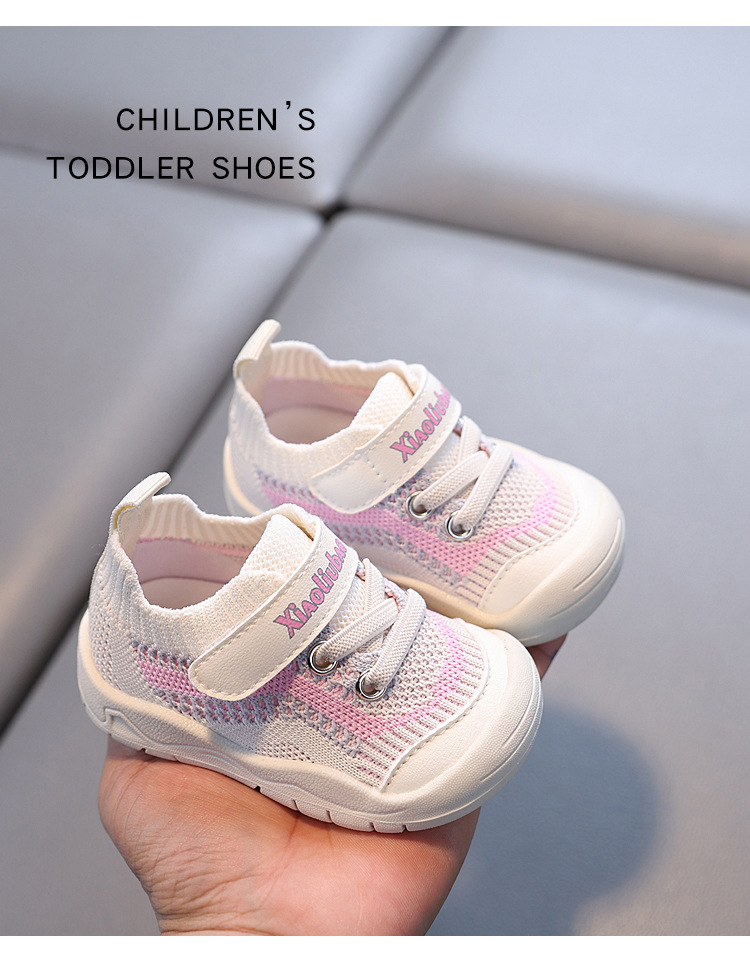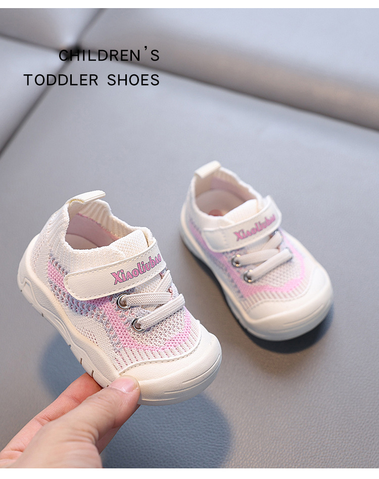 Primavera y otoño nuevos zapatos de malla para bebés zapatos para niños pequeños transpirables zapatos casuales de suela suave de tejido volador para bebés y niños pequeños zapatos para niñas