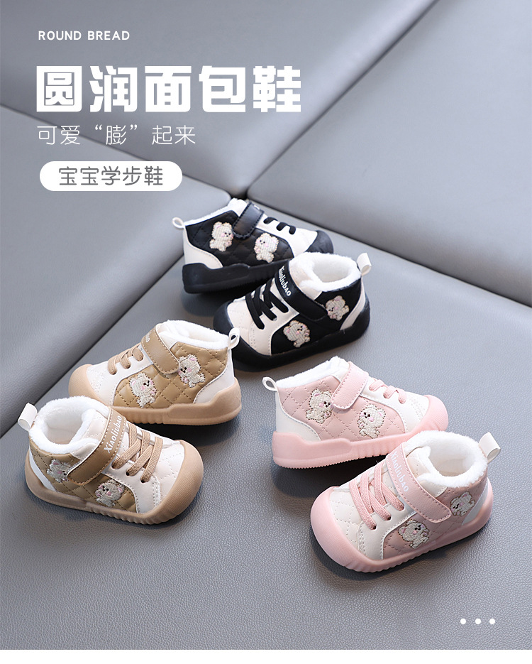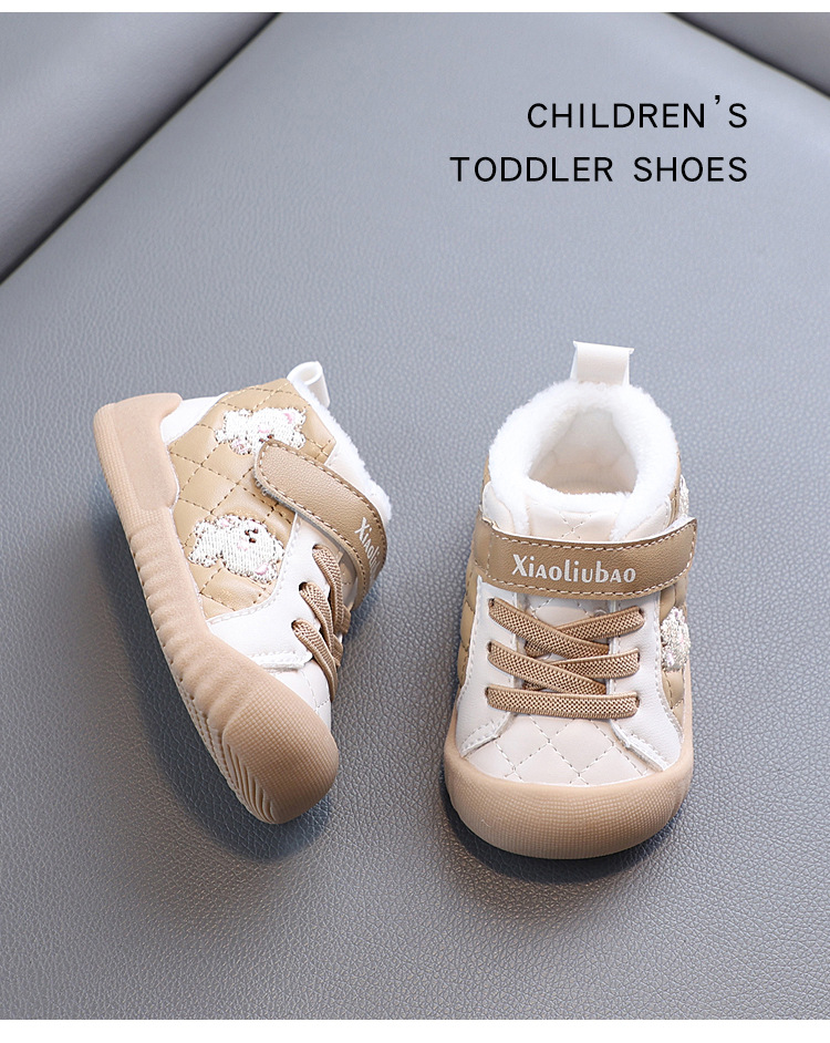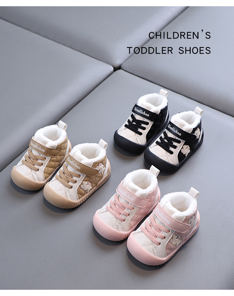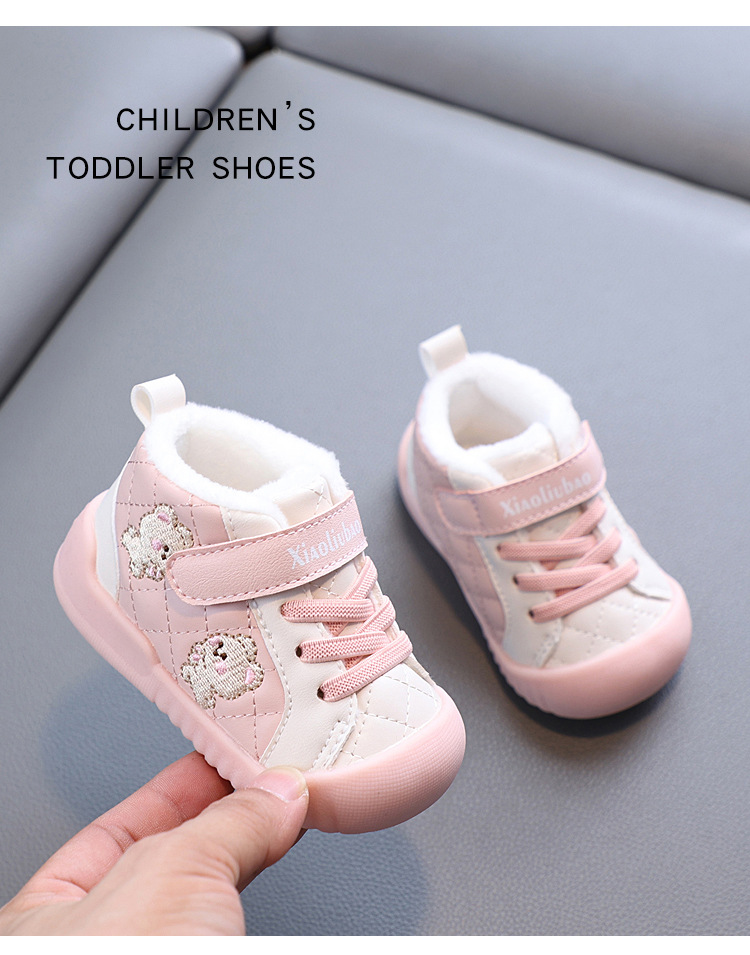 2024 nuevos zapatos de invierno para niños pequeños, dos zapatos de bebé de algodón para niños, suela suave, zapatos de algodón cómodos, zapatos calientes de dibujos animados para niños