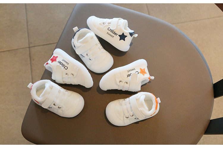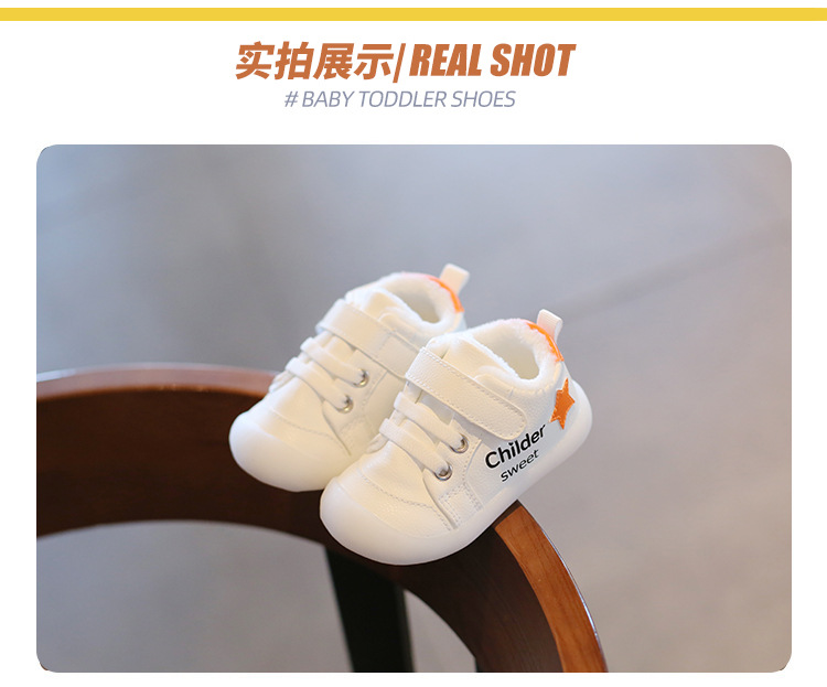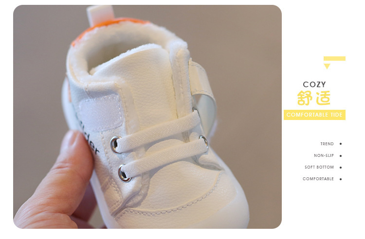 Nuevos zapatos de invierno para niños pequeños, dos zapatos de bebé de algodón para niños, zapatos de algodón cómodos de suela suave, zapatos blancos ligeros y cálidos de cuero