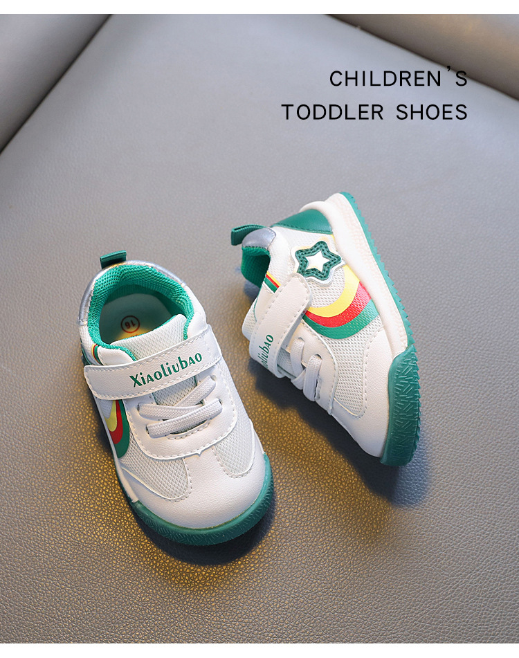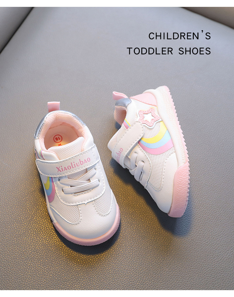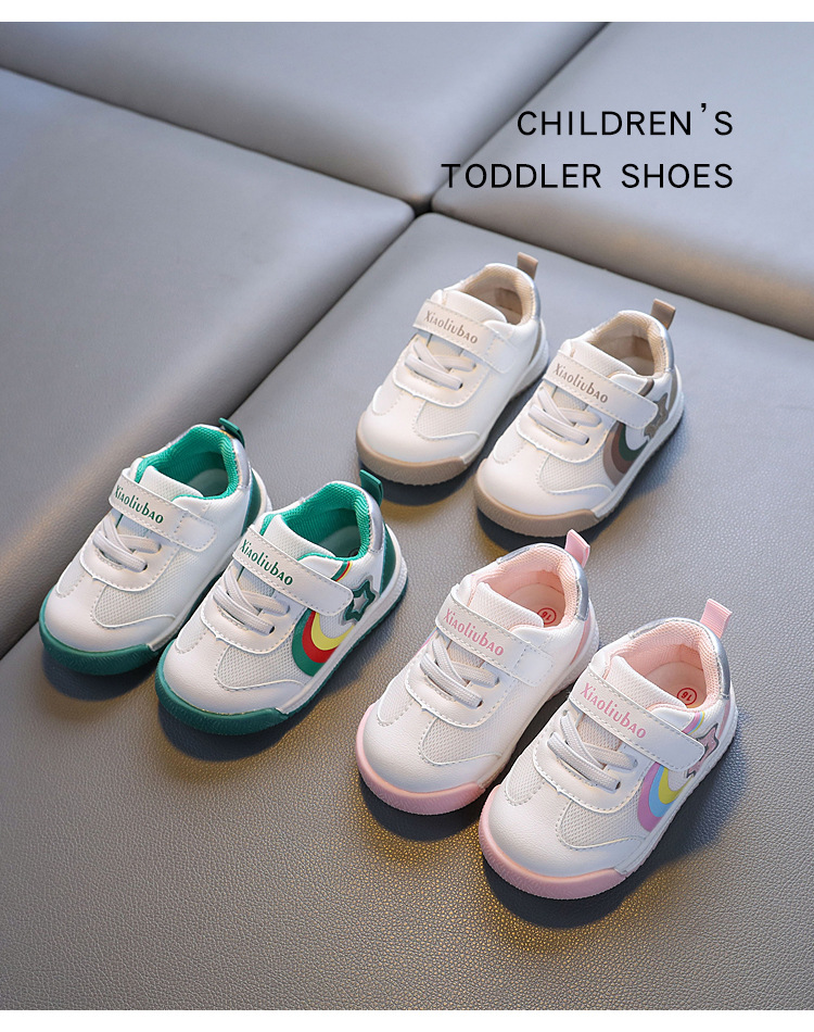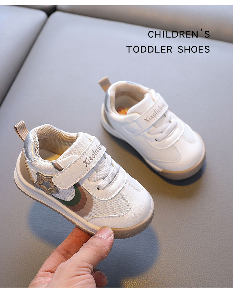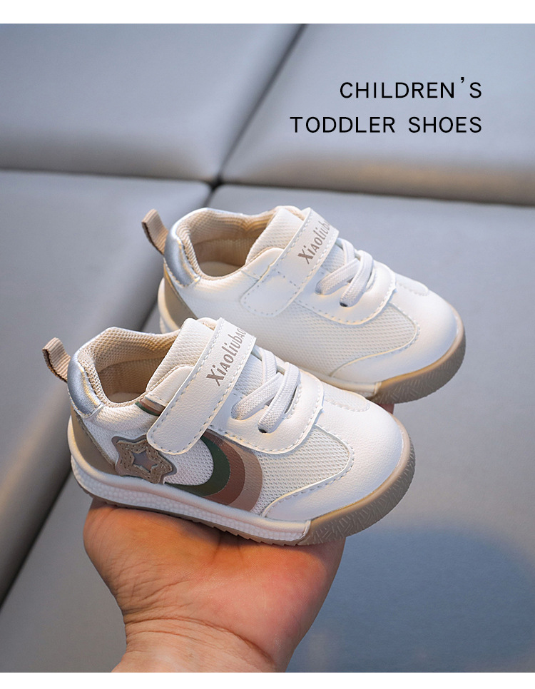 2024 otoño nuevo estilo niño zapatos blancos punta redonda malla fondo suave velcro antideslizante moda niñas zapatillas casuales