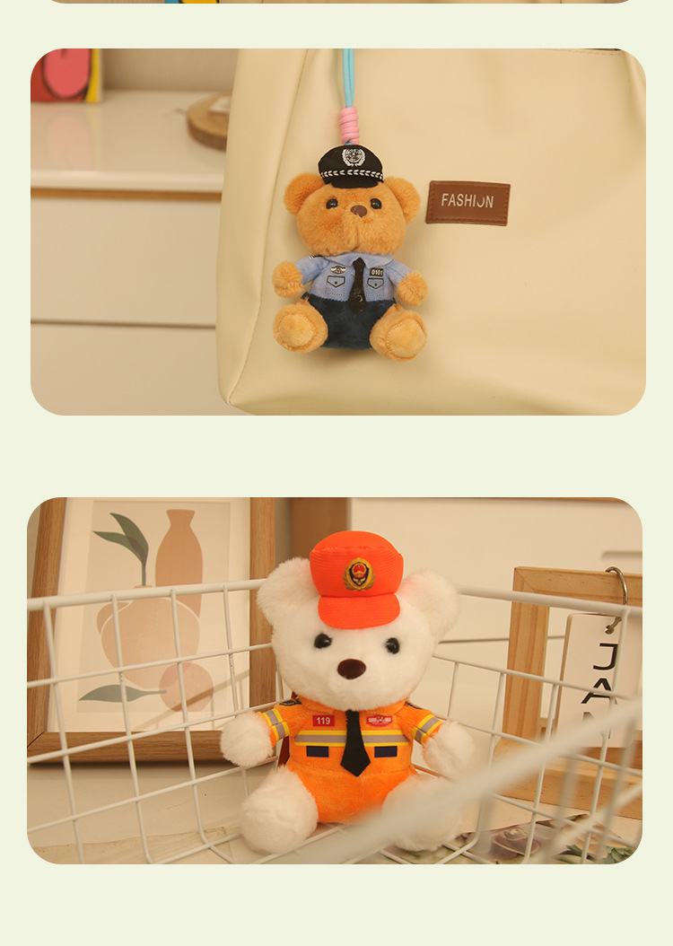 Celebridades de Internet lindo y lindo policía de tráfico oso colgante peluche muñeca bombero policía bolso colgante llavero muñeca