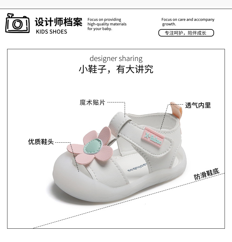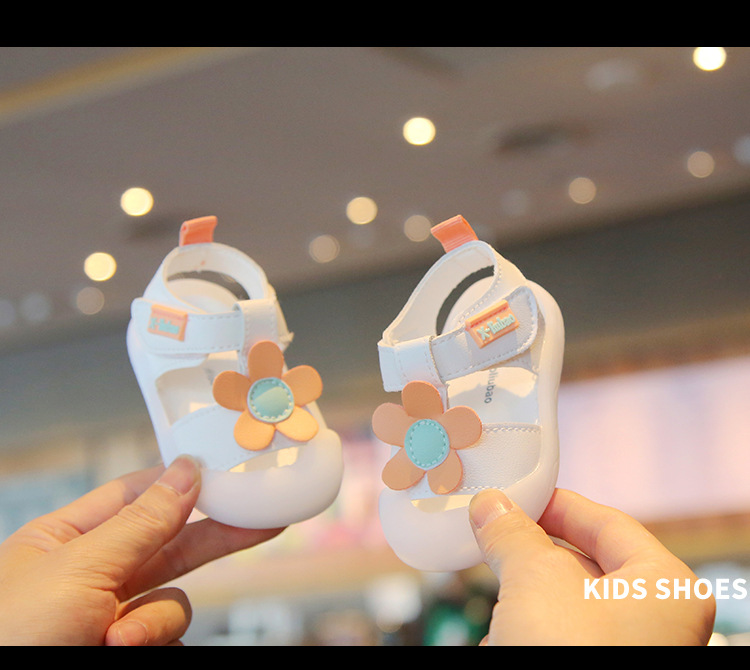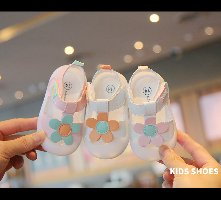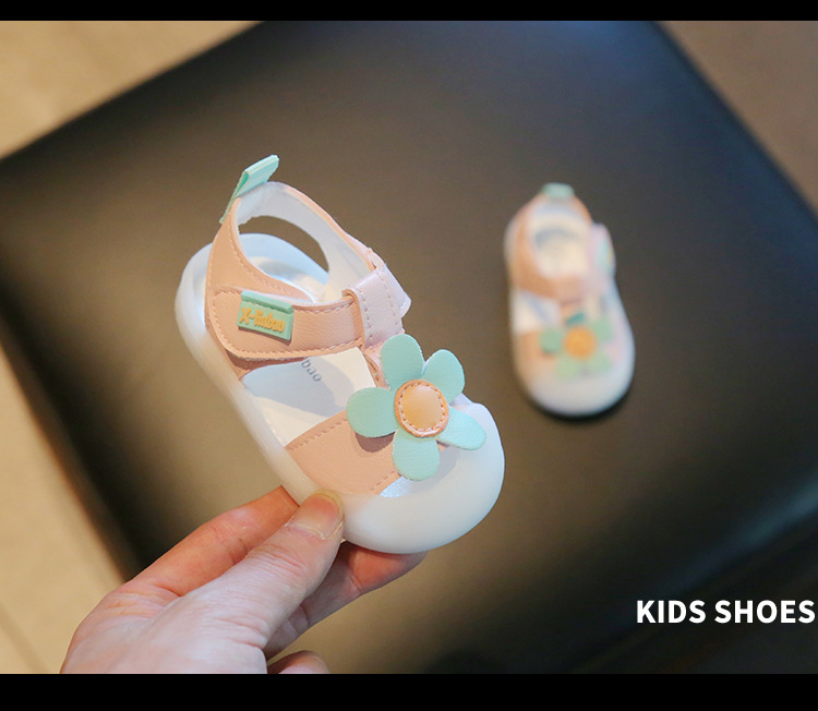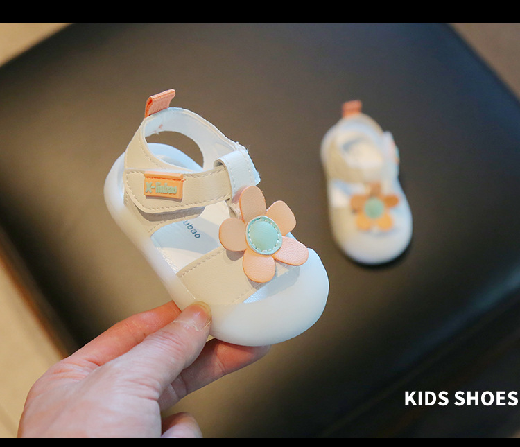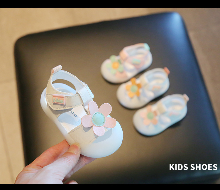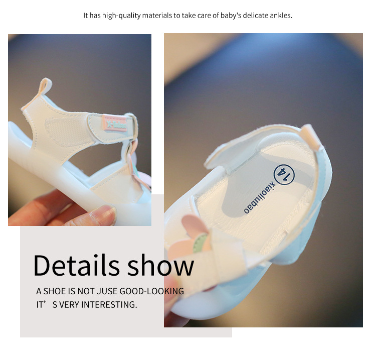 Sandalias de bebé femenino 2024 estilo de verano 0 uno 1-2 años bebé de suela blanda zapatos de princesa para niños pequeños zapatos para niñas 3