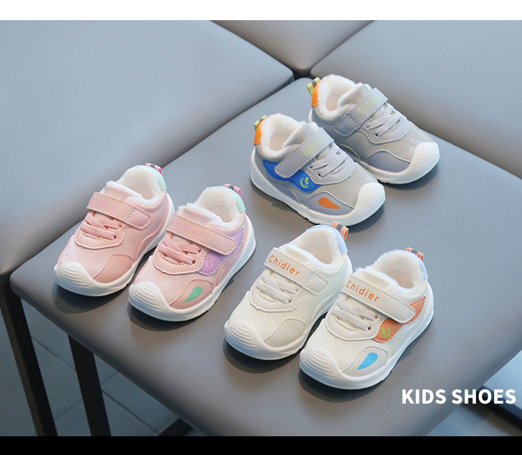 Zapatos funcionales para bebés de otoño e invierno para niños nuevos zapatos de algodón forrados de lana para bebés zapatos para niños pequeños zapatos antideslizantes para niños al por mayor