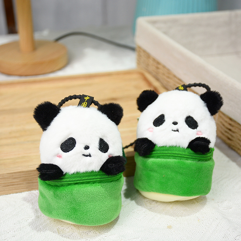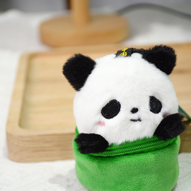 Monedero de felpa de panda de tubo de bambú lindo tesoro nacional flor flor caja ciega bolsa para auriculares mini llavero mochila escolar colgante mujer