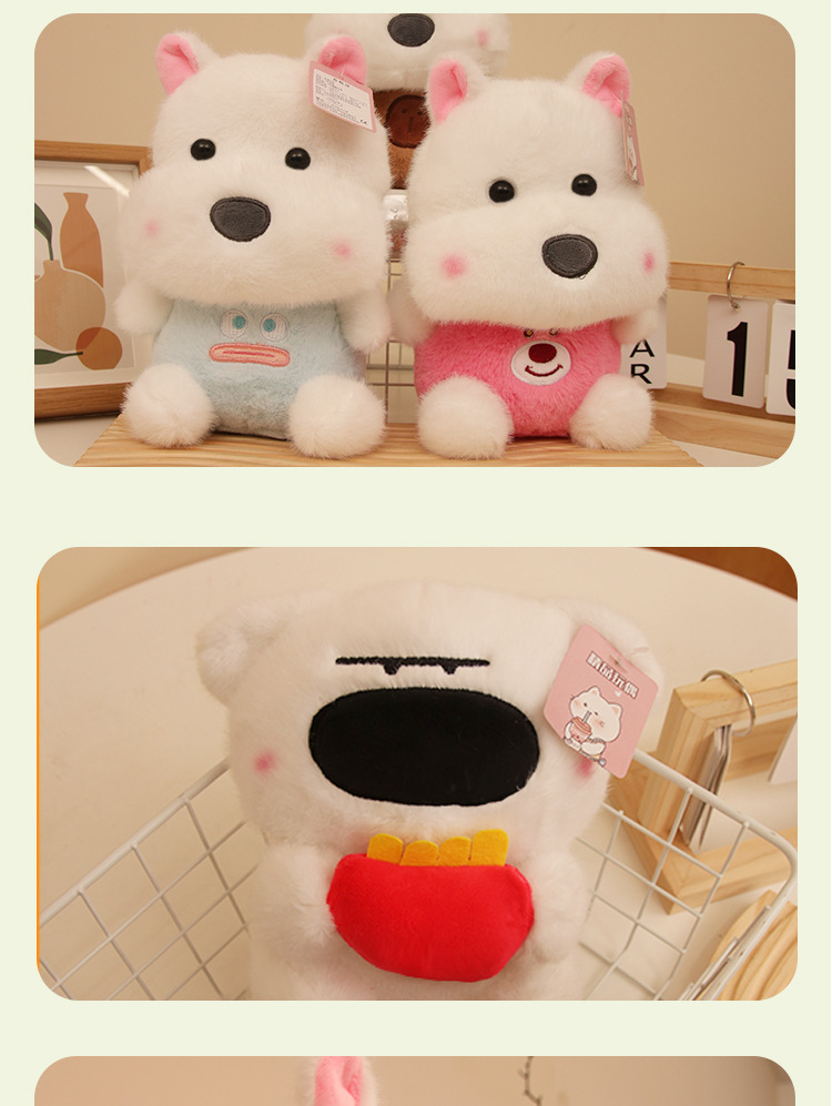 Linda caricatura West Highland Paparazzi máquina de captura de peluche empresa de muñecas evento regalo al por mayor niños niñas trompeta