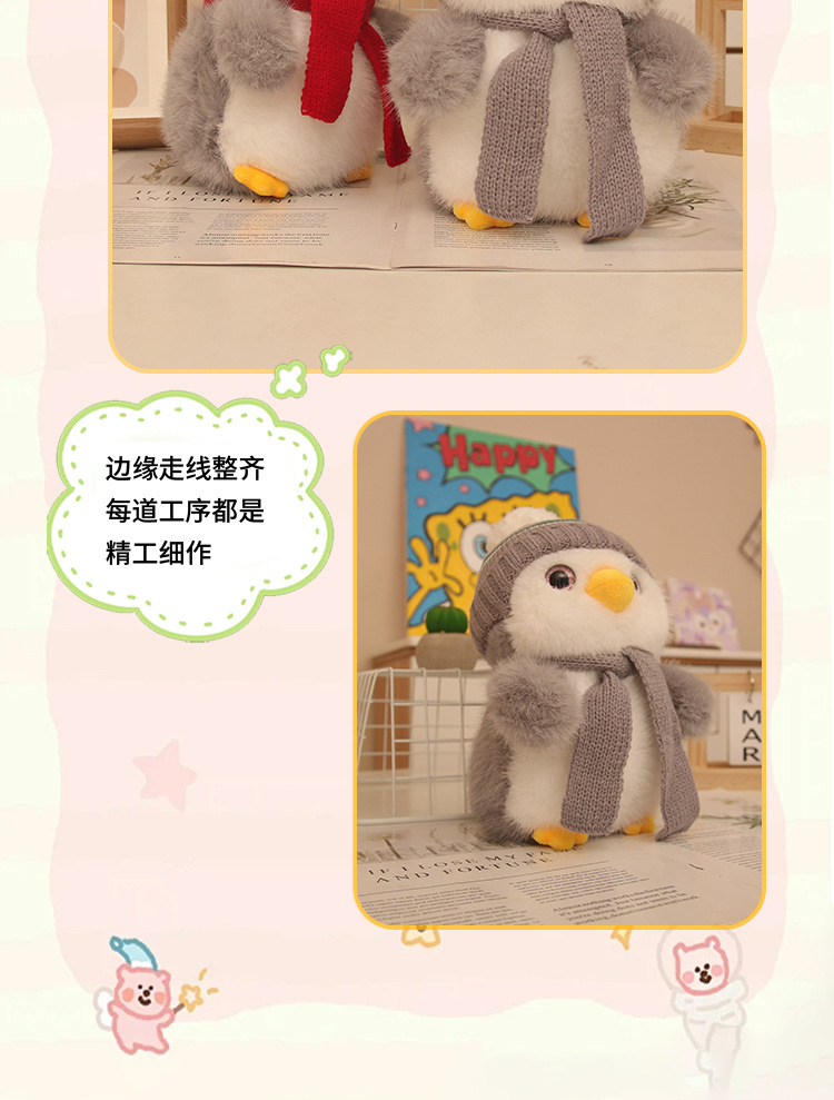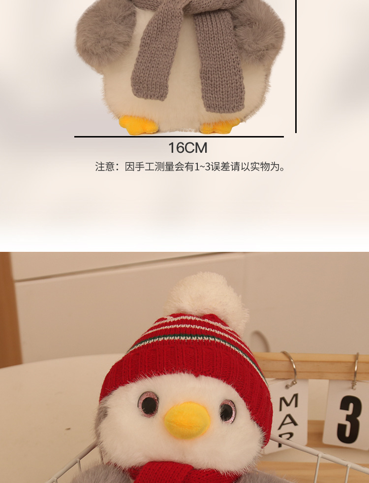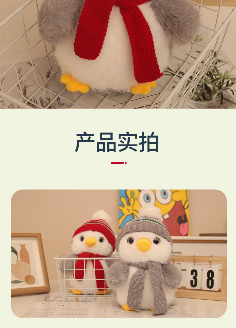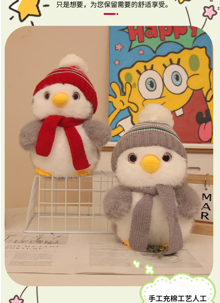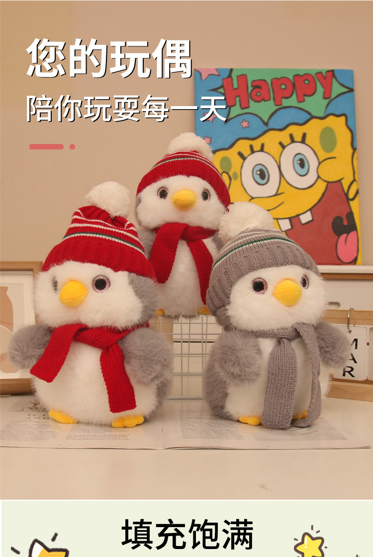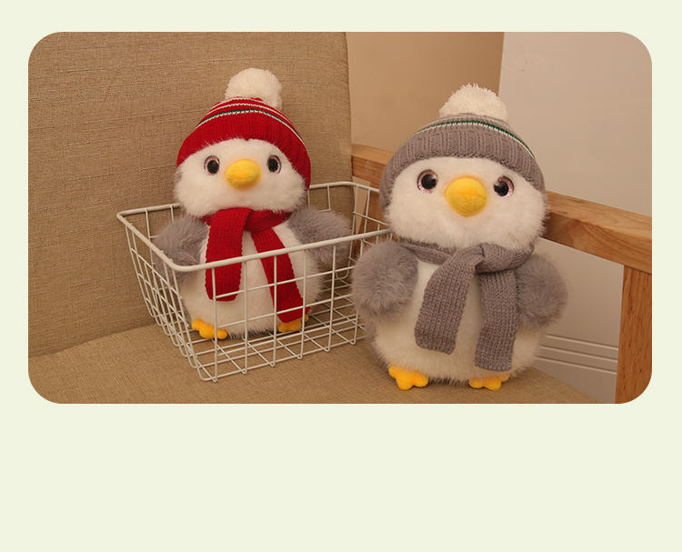 Nuevo invierno con sombrero pingüino peluche muñeca pingüino para enviar amigos para acompañar linda bufanda muñeca pingüino