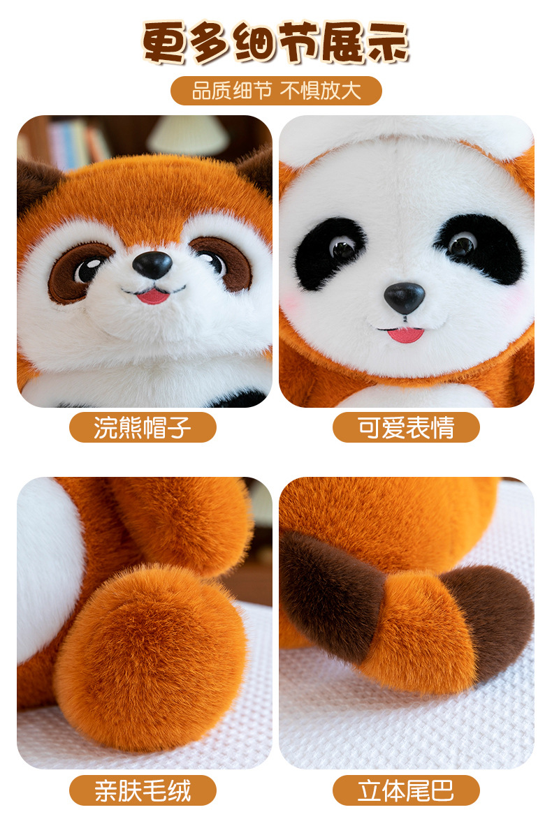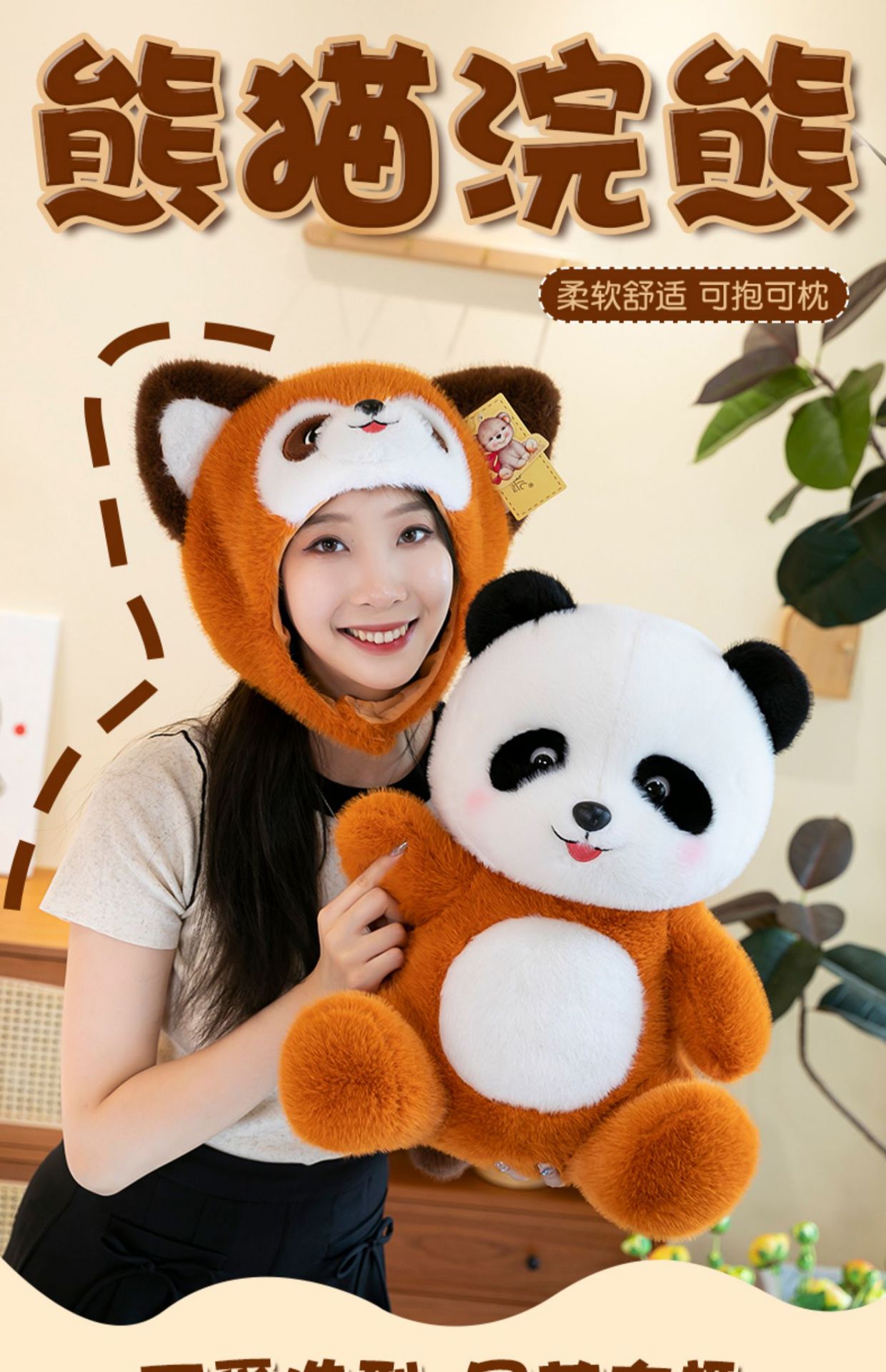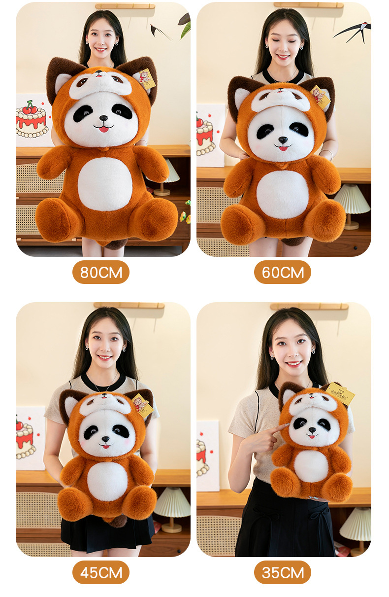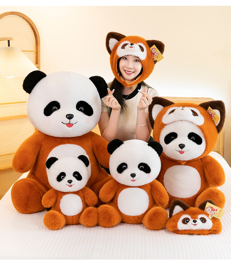 Linda transformación mapache panda muñeca peluche pequeño panda muñeca muñeca almohada niño niña regalo
