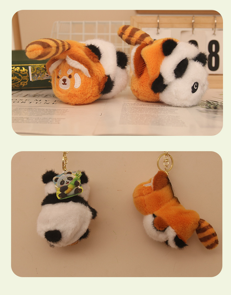 Voltee y conviértase en una muñeca de panda pequeño, muñeco de mapache pequeño, muñeco de muñeca, llavero, juguete de peluche, muñeca de acompañamiento, colgante