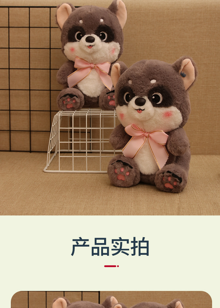 Linda boutique pajarita mapache peluche niña muñeca muñeca regalo de cumpleaños regalo de muñeca del día del niño