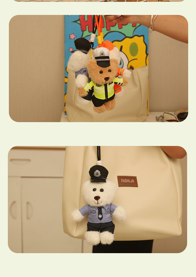 Boutique celebridad de Internet policía oso peluche policía de tráfico oso pequeño colgante llavero muñeca uniforme oso de peluche colgante lote