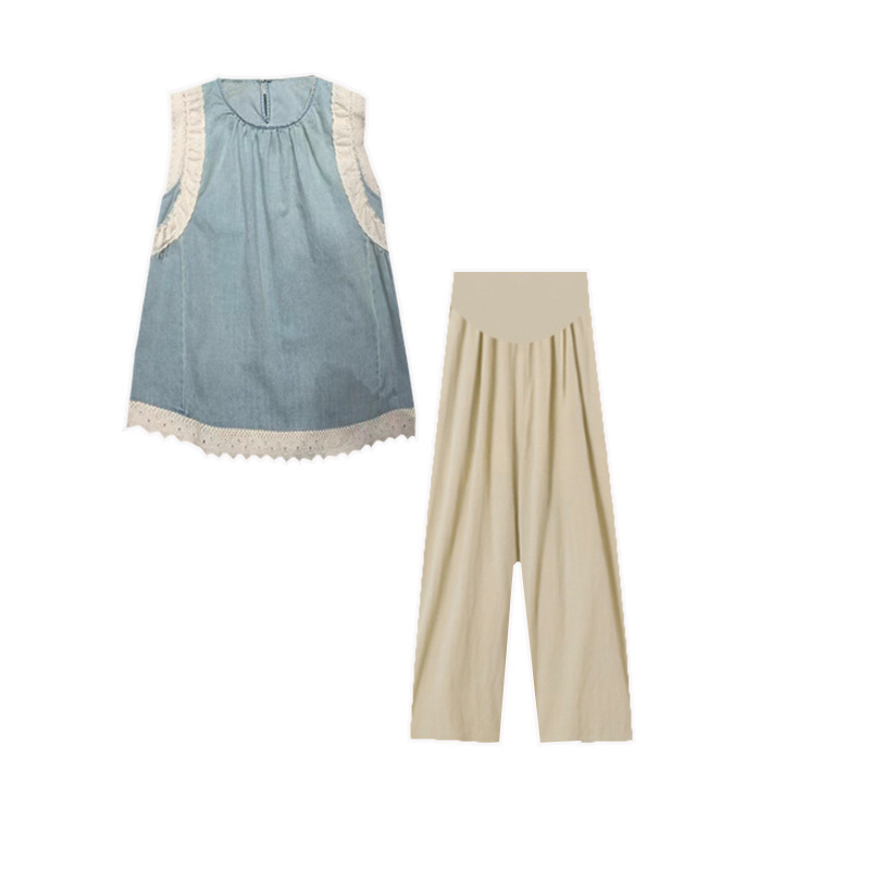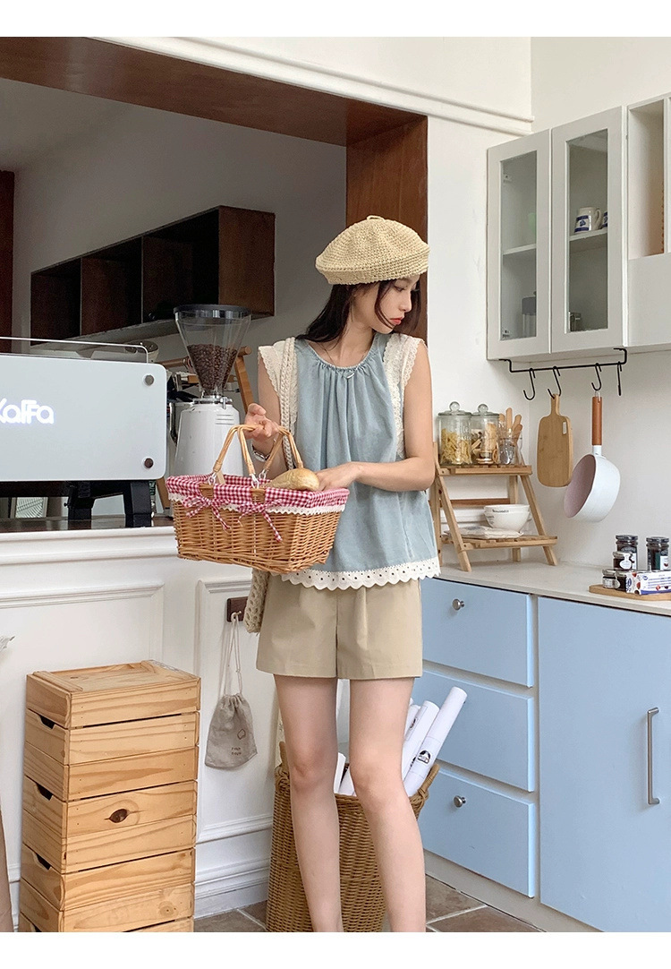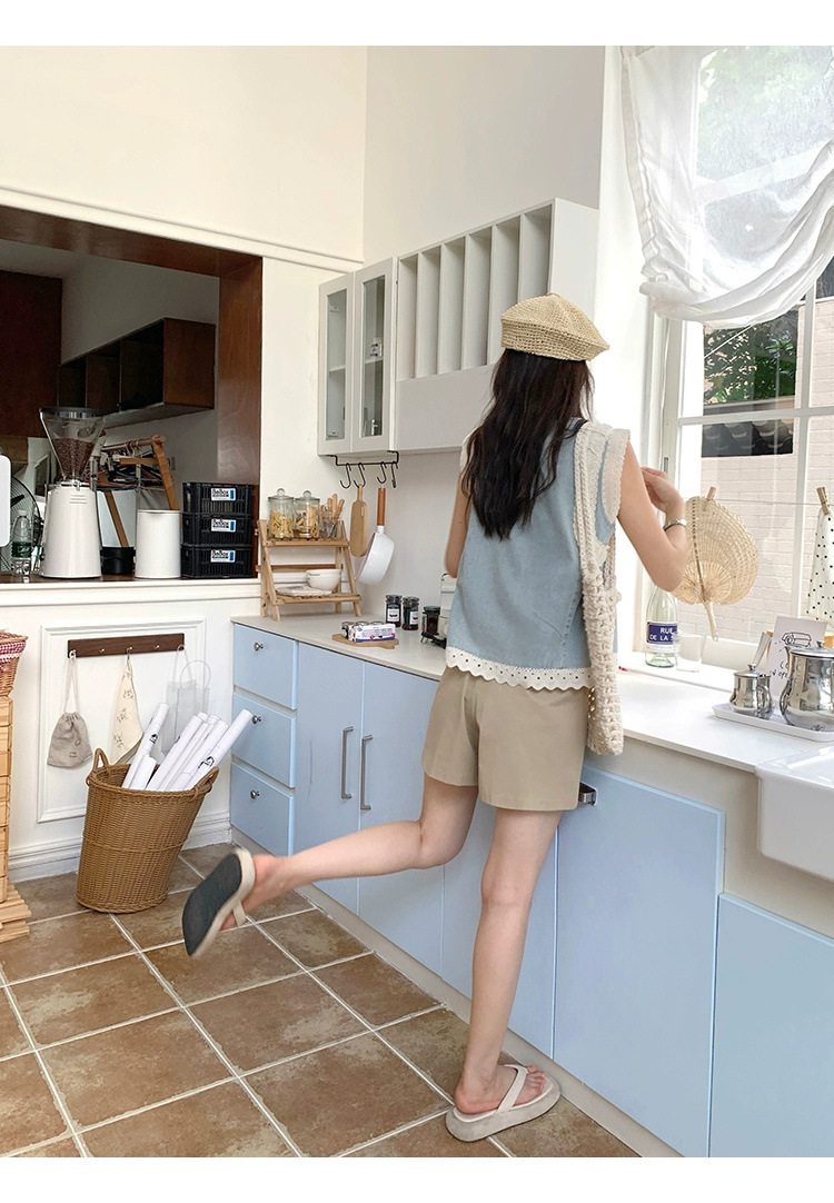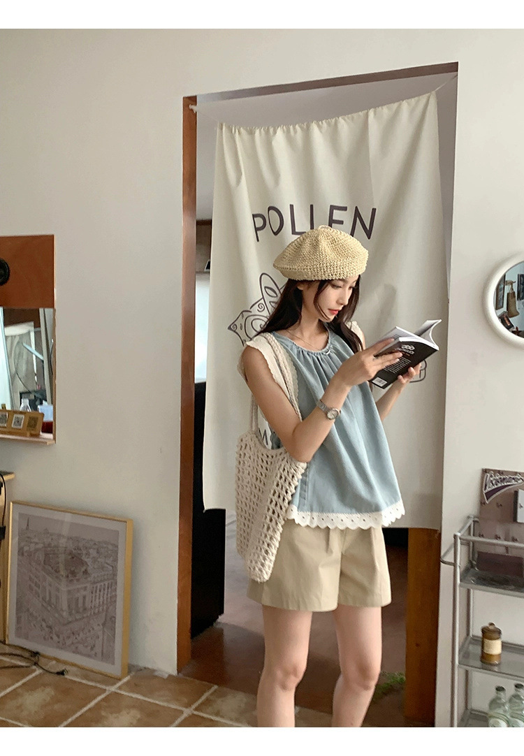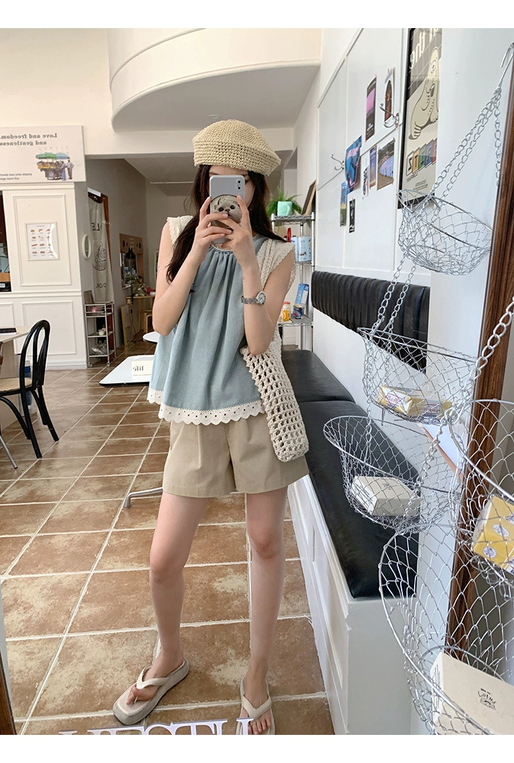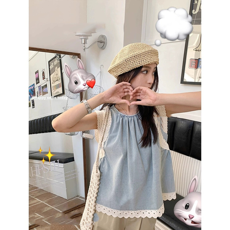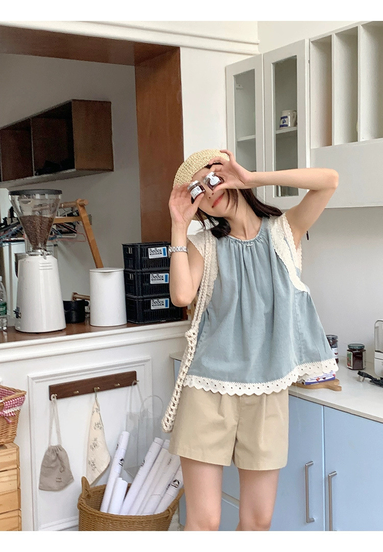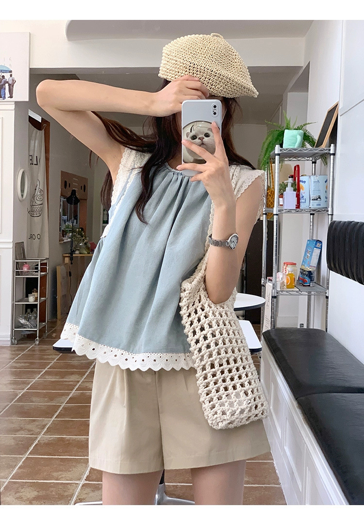 Top de mezclilla con costuras de encaje retro de verano de moda