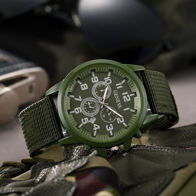 Transfronterizo caliente nueva moda reloj militar reloj de cuarzo calendario correa de nylon reloj de moda elegante de los hombres